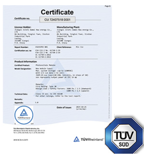 Standard unit dimensions: 1200mm×2400mm, active area per unit: 1.8㎡, total thickness including aluminum frame and PV panel: 32mm, weight per square meter: 28kg, frame finish: powder coated, maximum wind pressure resistance: 2.5kPa, sound insulation rating: 35dB, solar conversion efficiency: 22%-23%, operating temperature range: -40℃~85℃, 25-year power output warranty, 10-year product warranty.