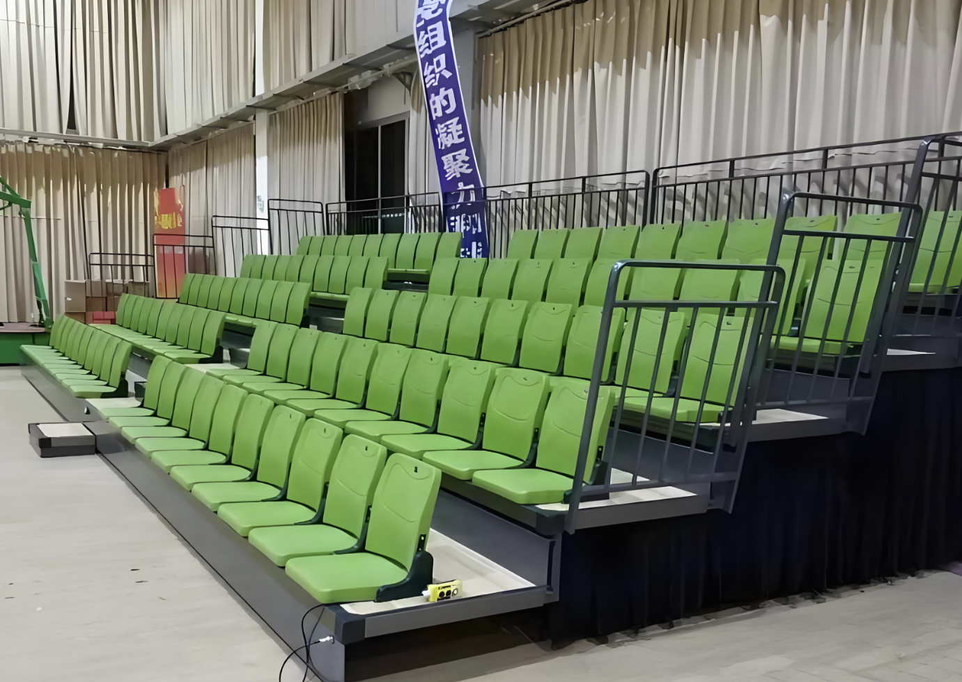 The electric screw drive system ensures stable and smooth retraction with low noise, avoiding disturbance to gatherings. The automatic locking mechanism prevents accidental movement of the seat during use, improving operation safety. The powder-coated cold-rolled steel frame is rust-proof and durable, adapting to long-term use in indoor venues. The PU leather surface is easy to wipe and clean, reducing daily maintenance workload. It solves the problems of laborious manual adjustment and low space utilization of traditional fixed auditorium seats, and can quickly adjust the layout of the venue according to different activity needs.