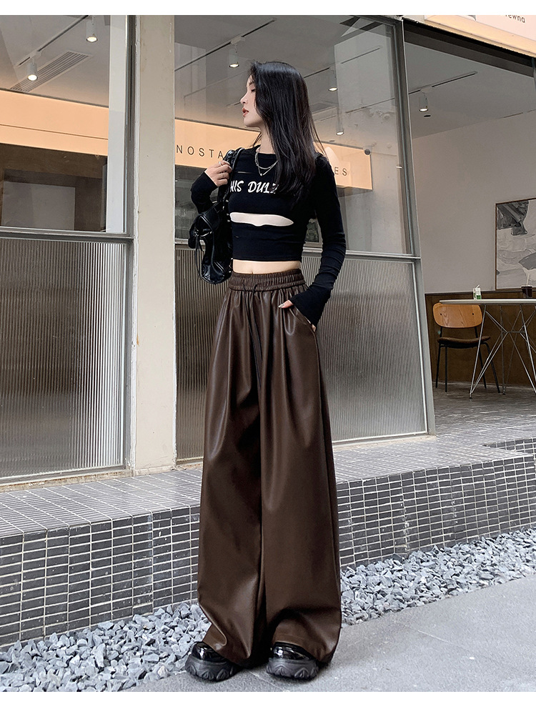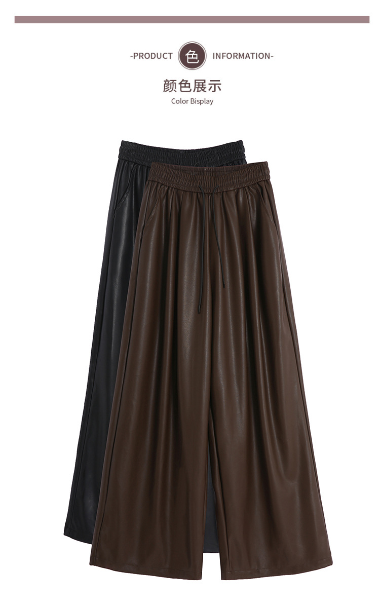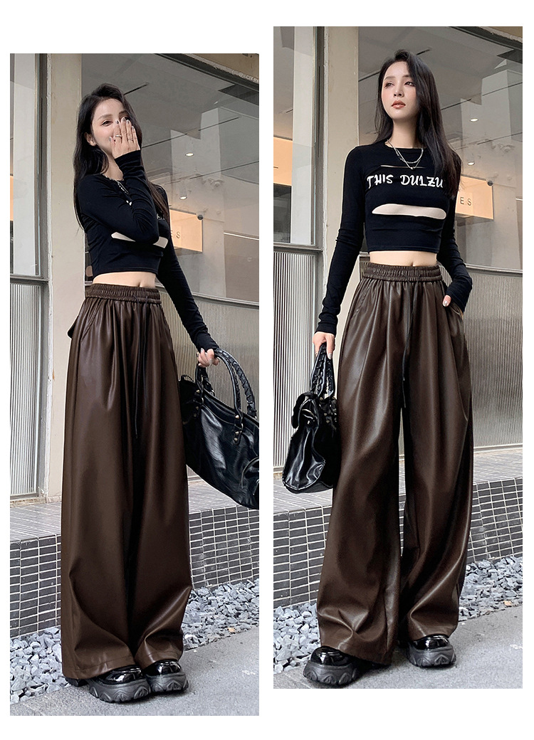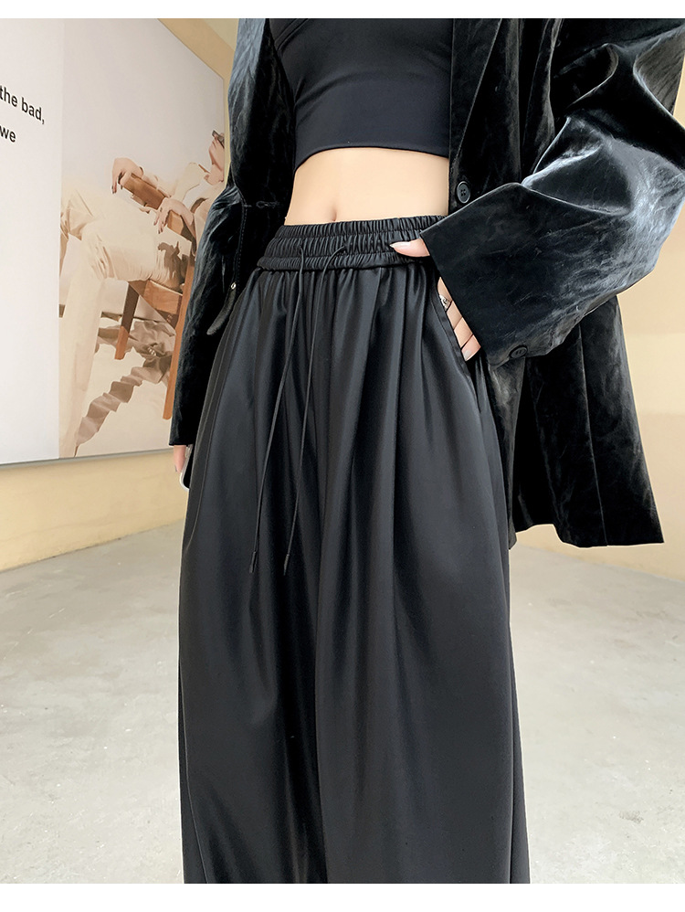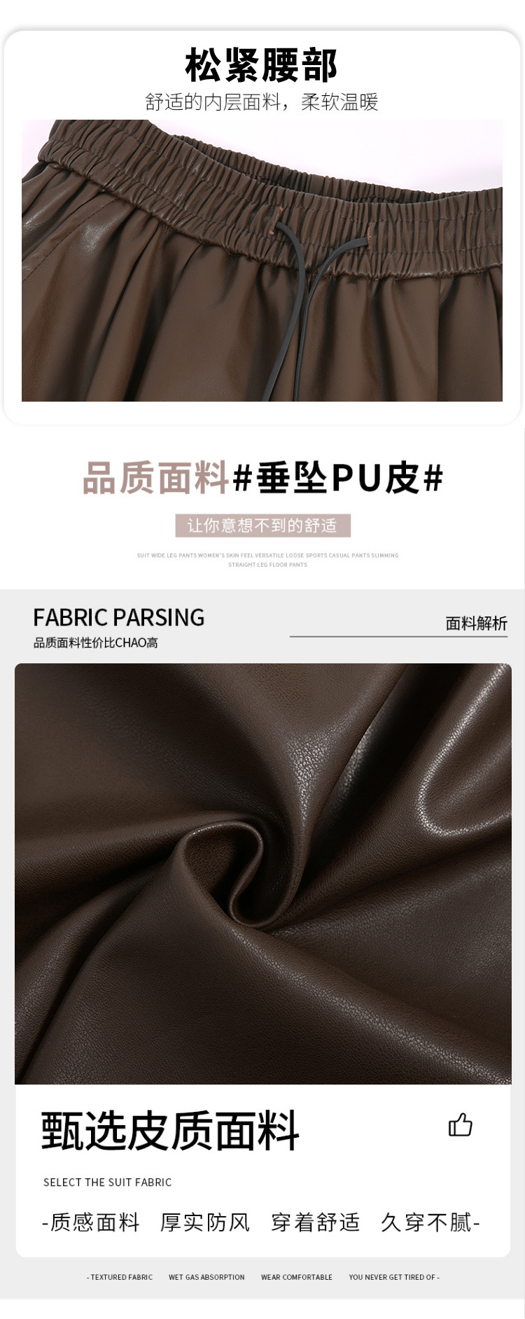 美式皮裤女复古宽松显瘦休闲裤抽绳哑光PU皮阔腿拖地裤潮