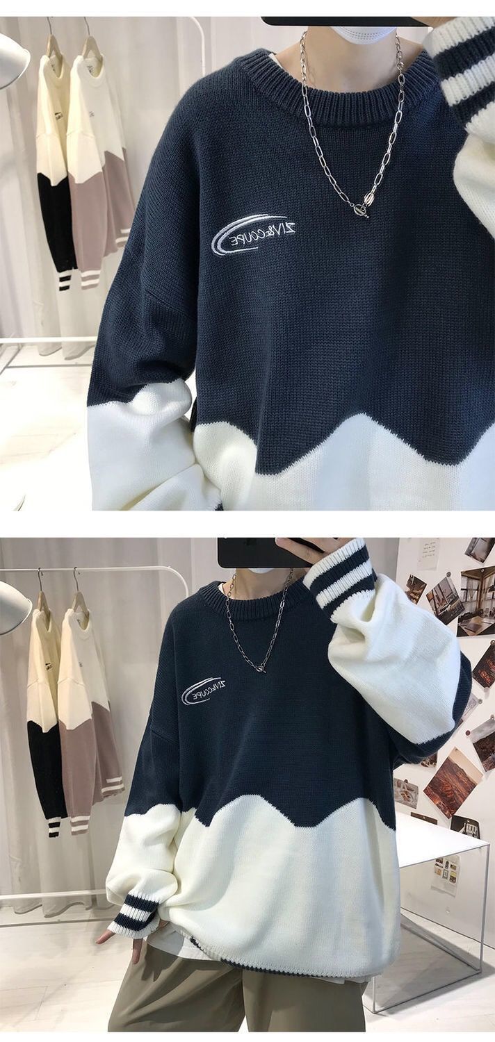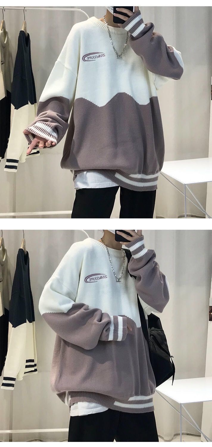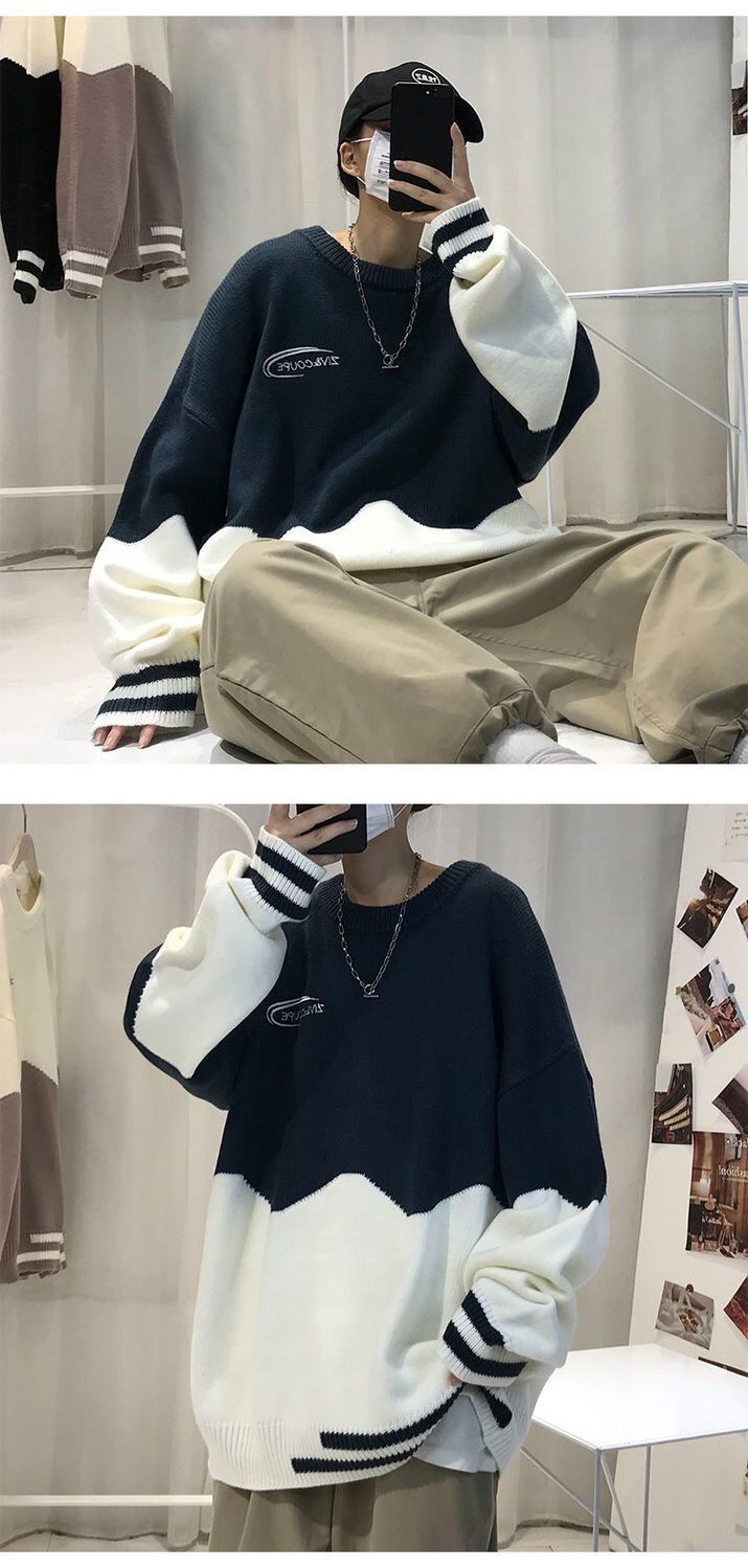季ins潮牌情侣高领毛衣男韩版潮流宽松圆领港风厚针织打底衫