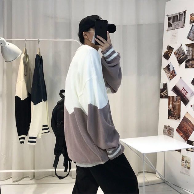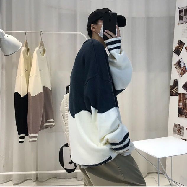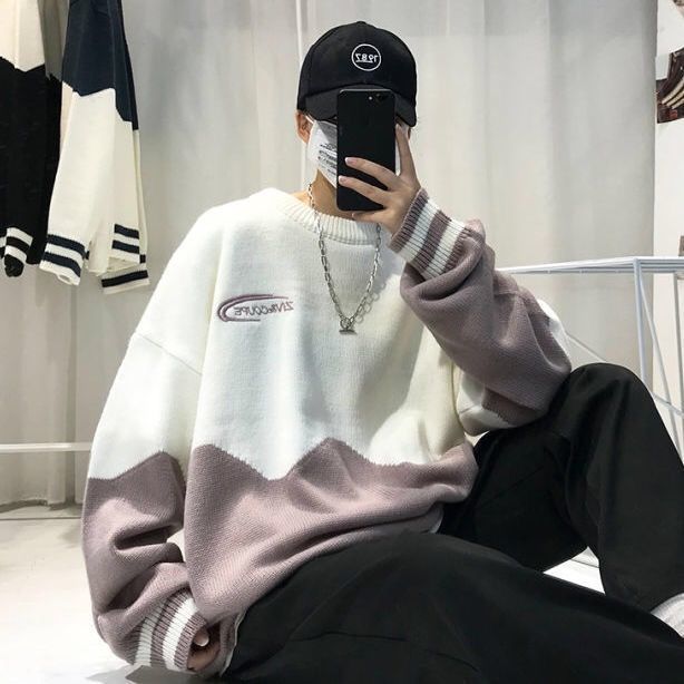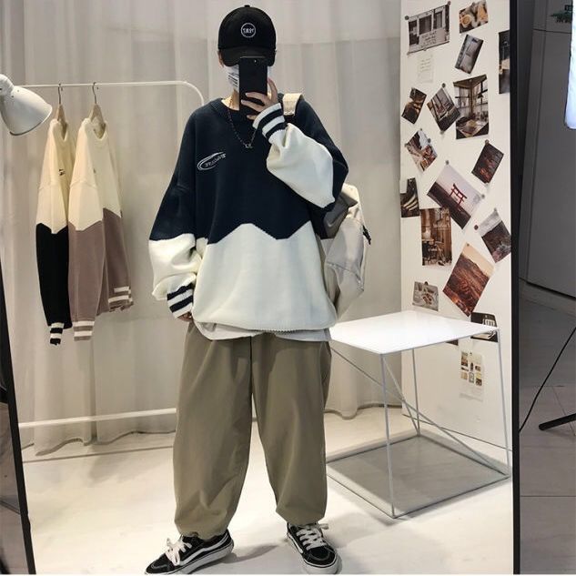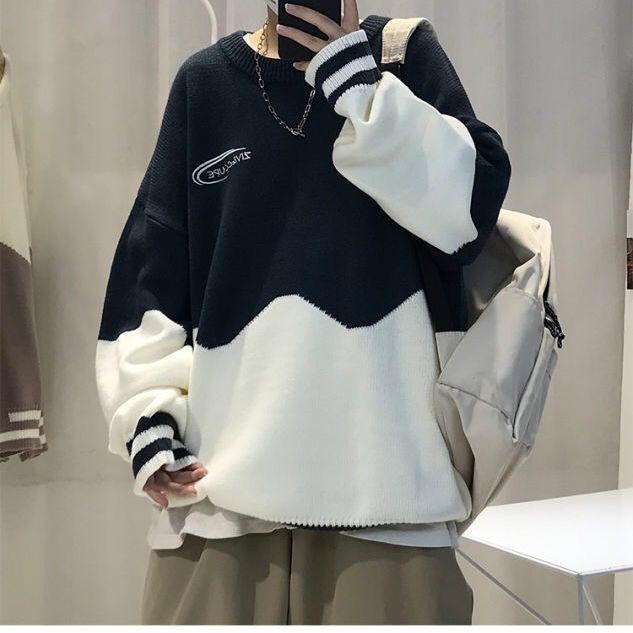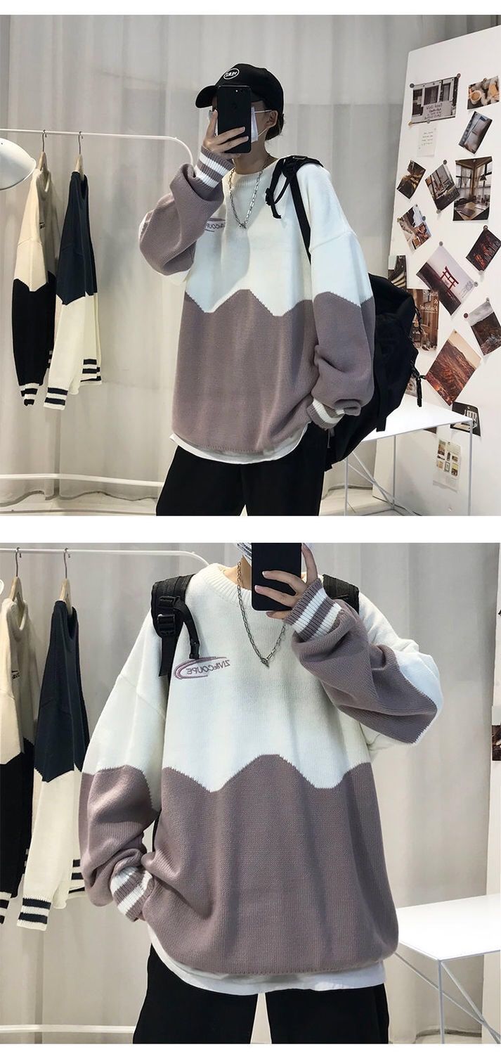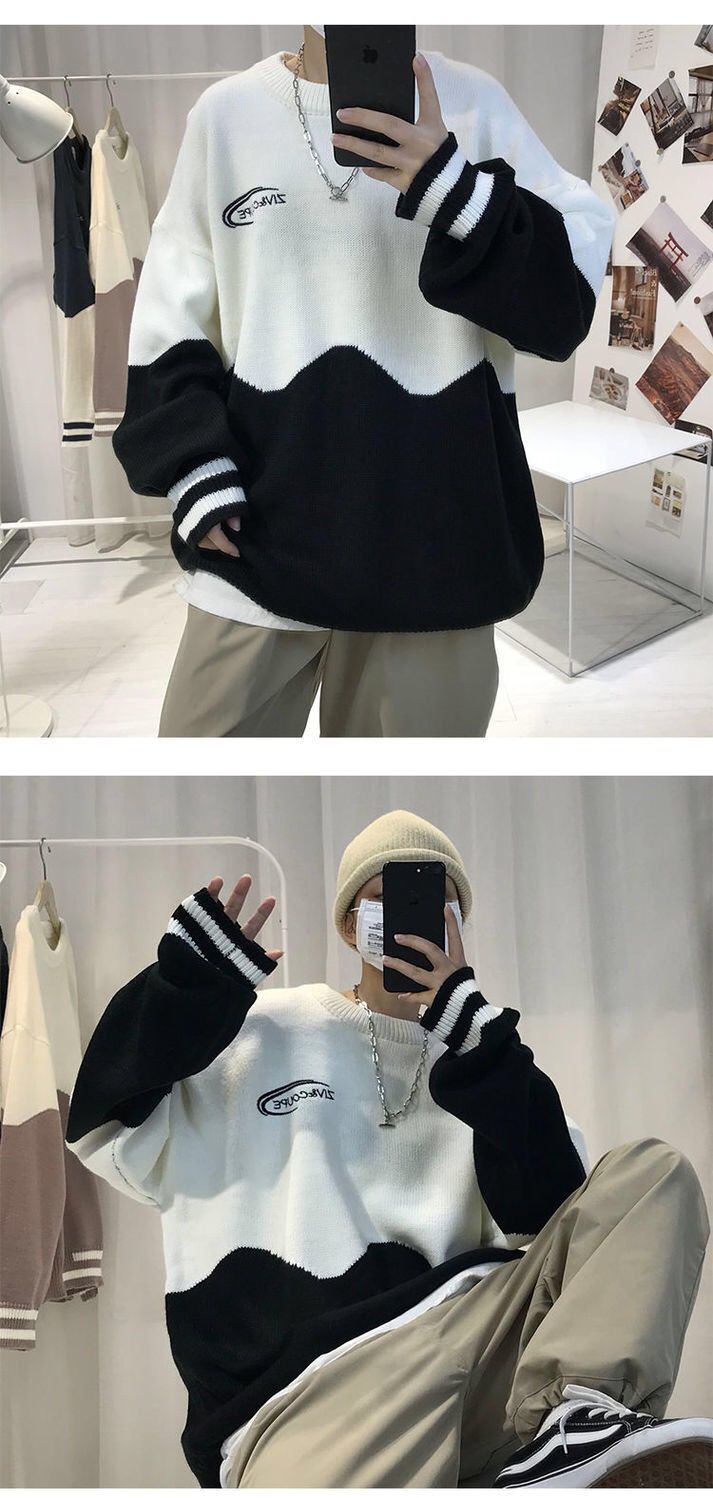 季ins潮牌情侣高领毛衣男韩版潮流宽松圆领港风厚针织打底衫