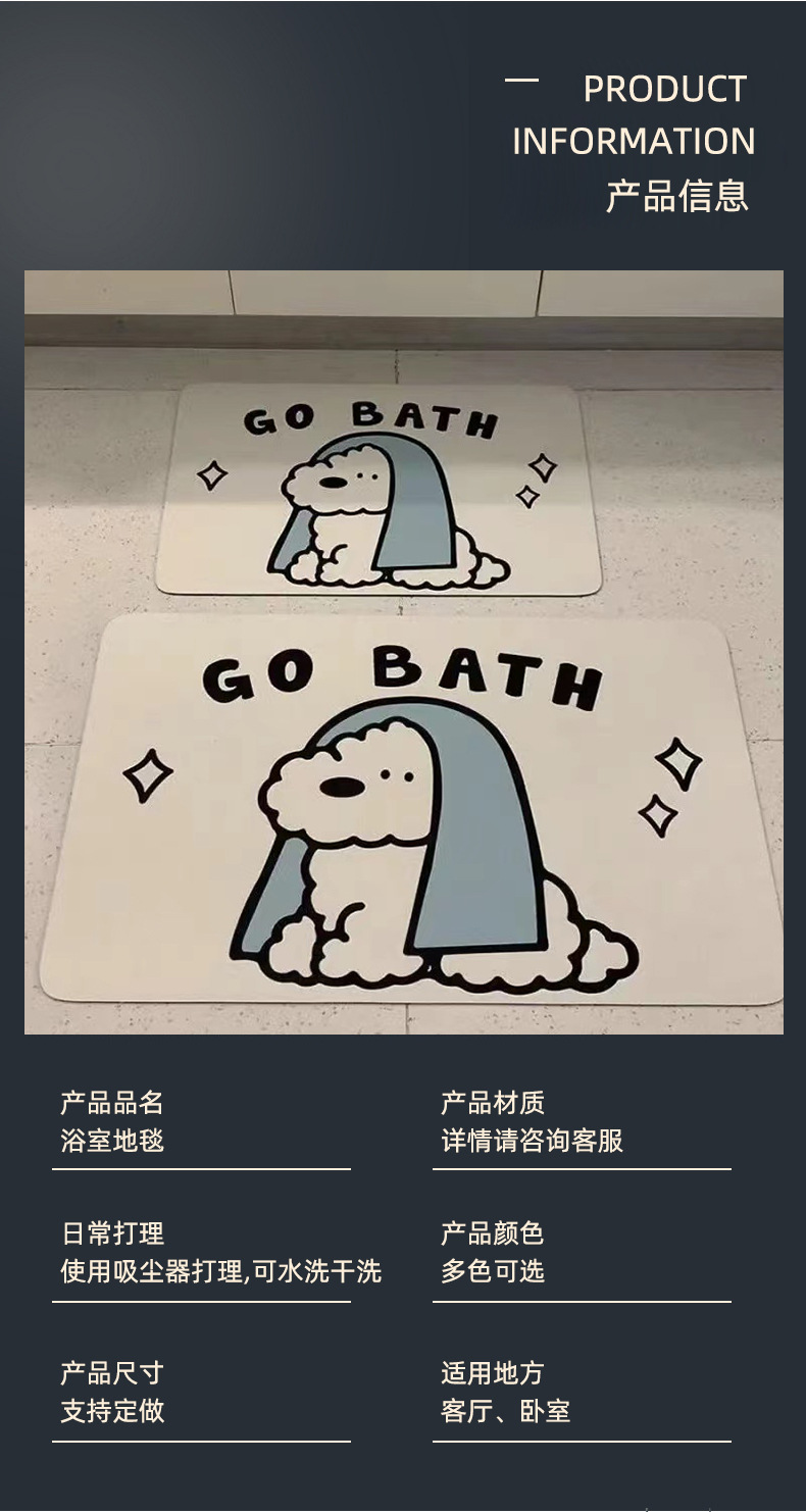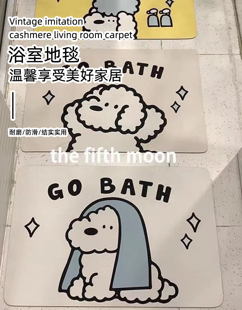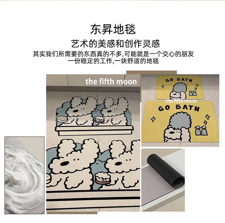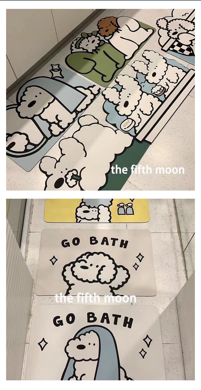 ins风可爱小狗卫生间浴室吸水硅藻科技绒软地垫可裁剪速干防滑垫