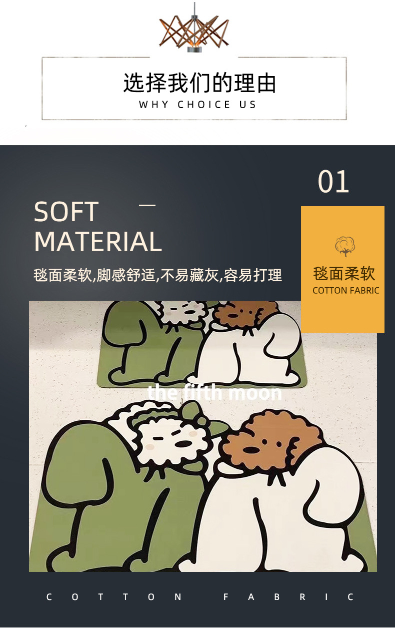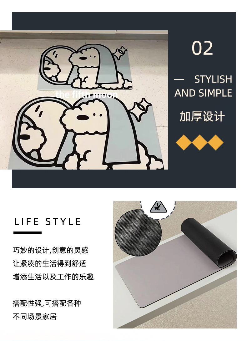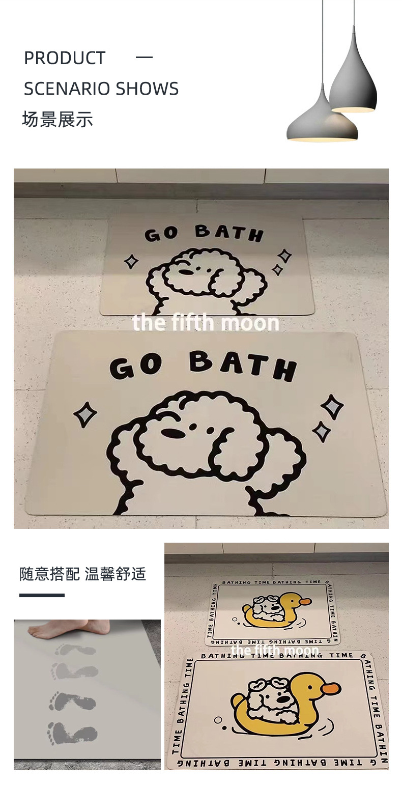 ins风可爱小狗卫生间浴室吸水硅藻科技绒软地垫可裁剪速干防滑垫