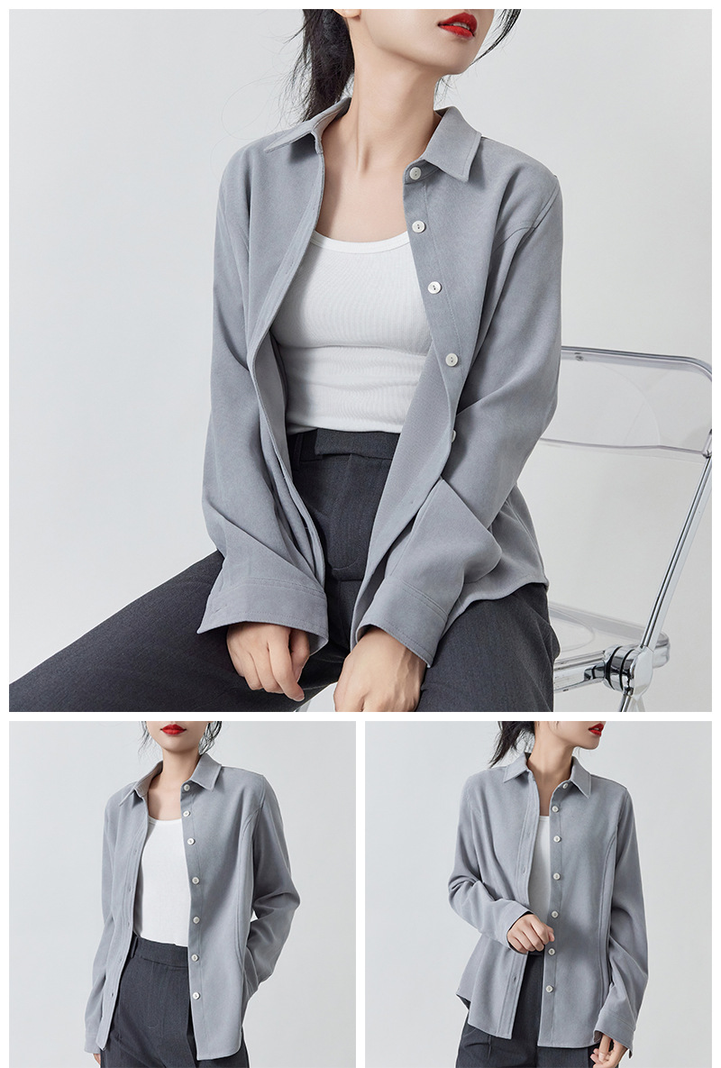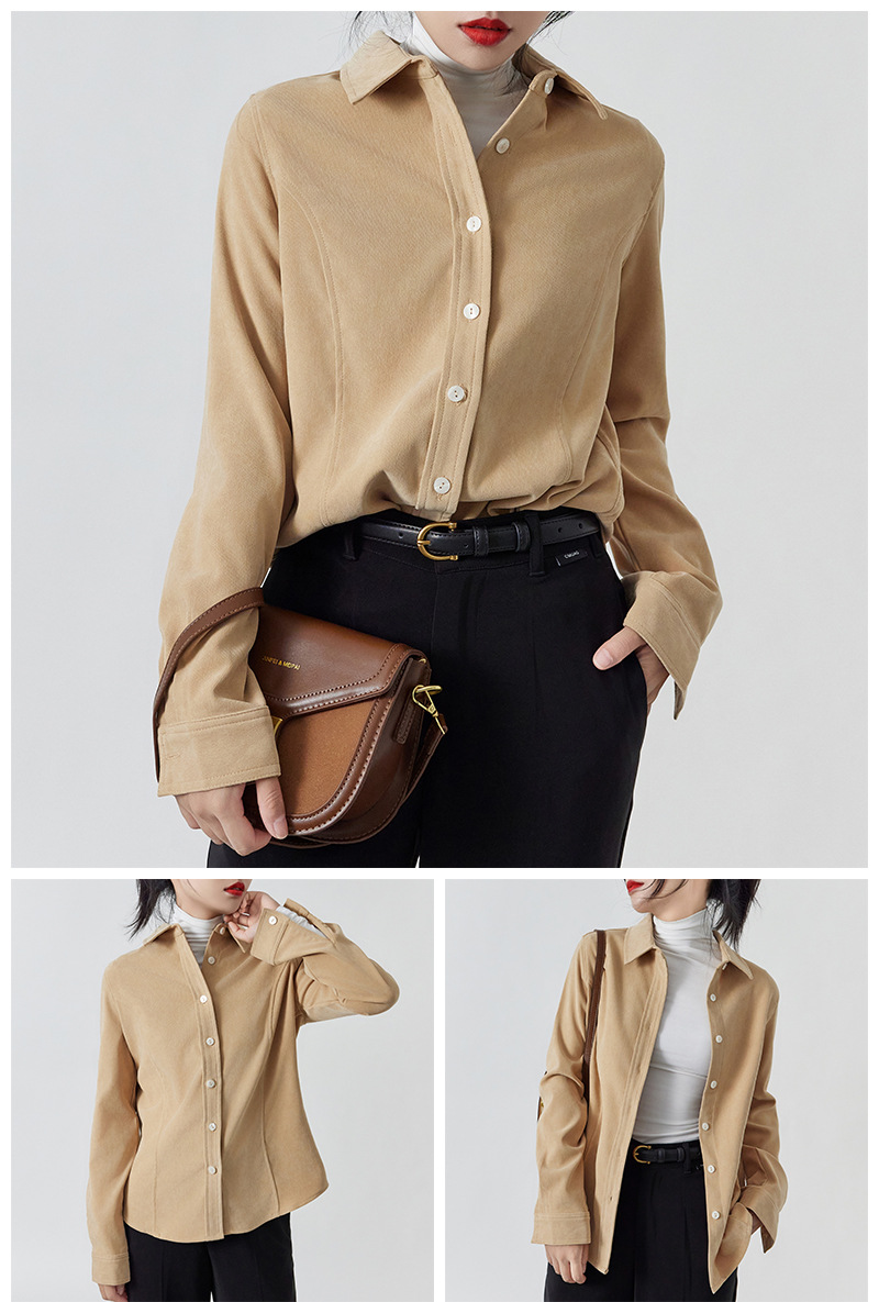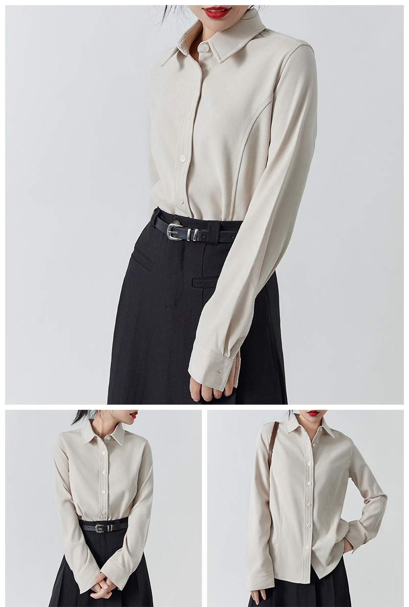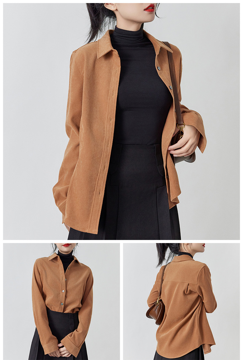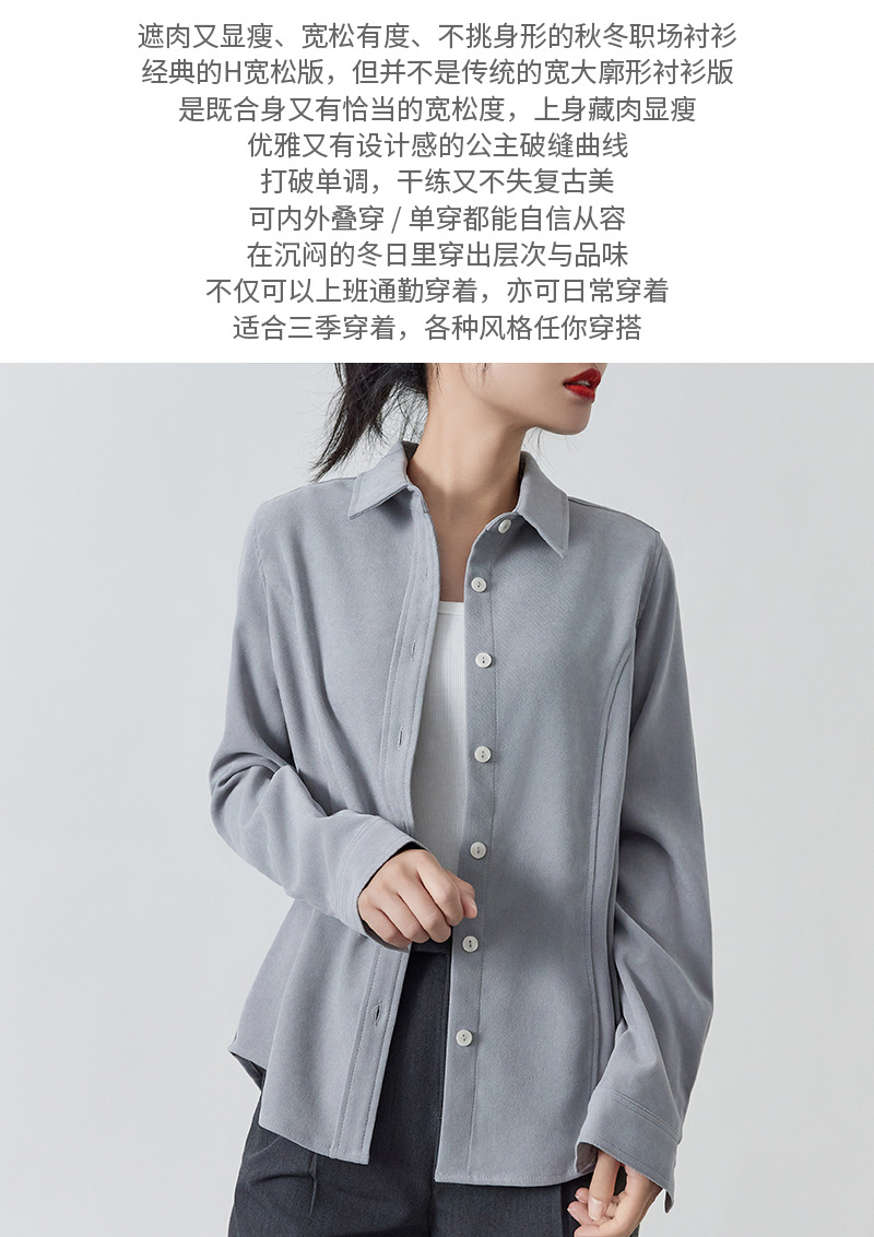 加厚磨毛细绒保暖上衣 纯色宽松显瘦长袖衬衫女可叠穿新