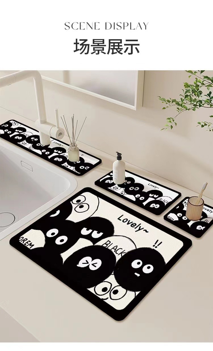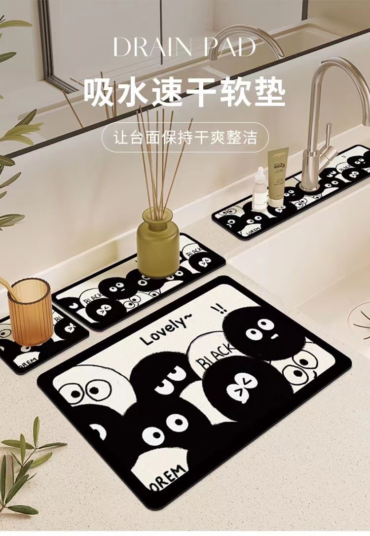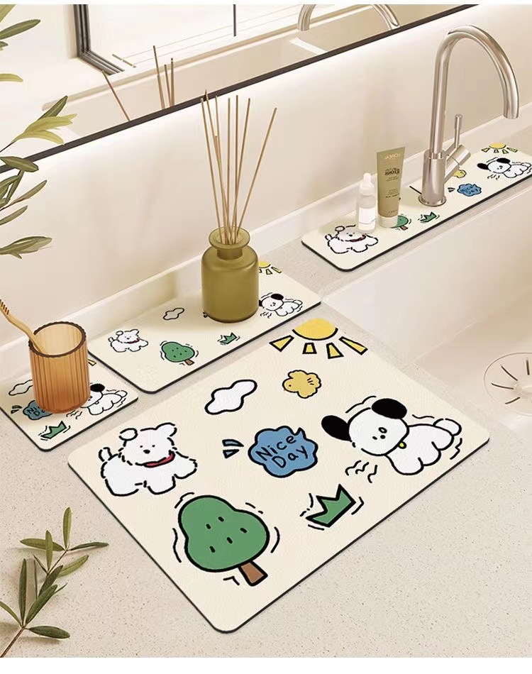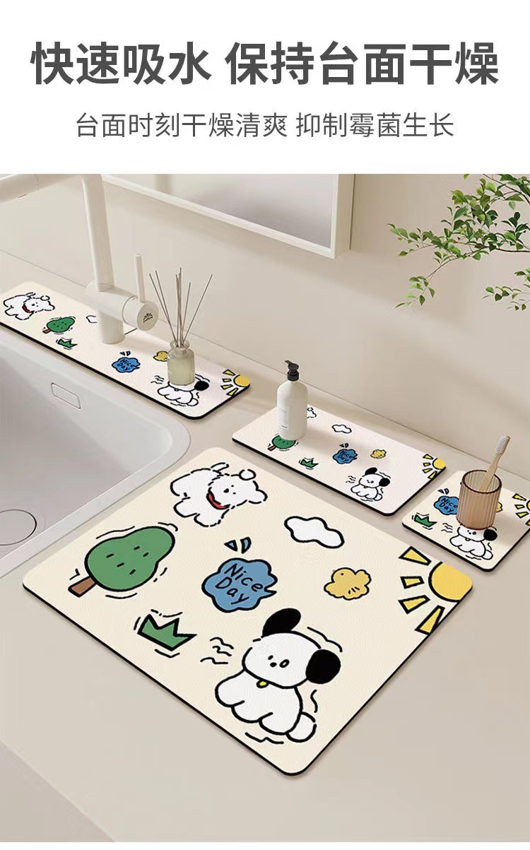 卡通厨房沥水垫厕所台面吸水杯垫碗盘隔热垫硅藻泥洗手台水龙头垫