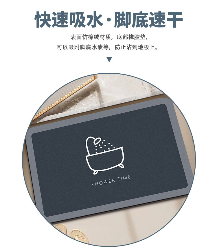 现代简约浴室门口耐脏防滑地垫家用卫生间吸水速干硅藻泥脚垫代发