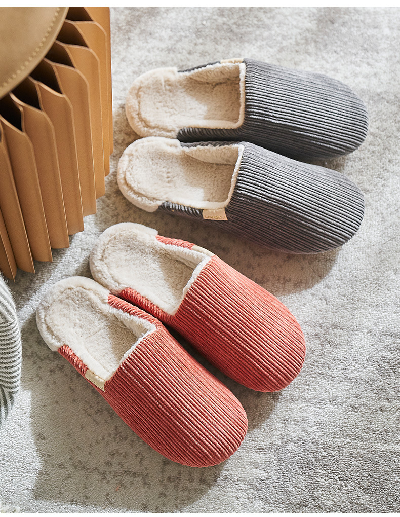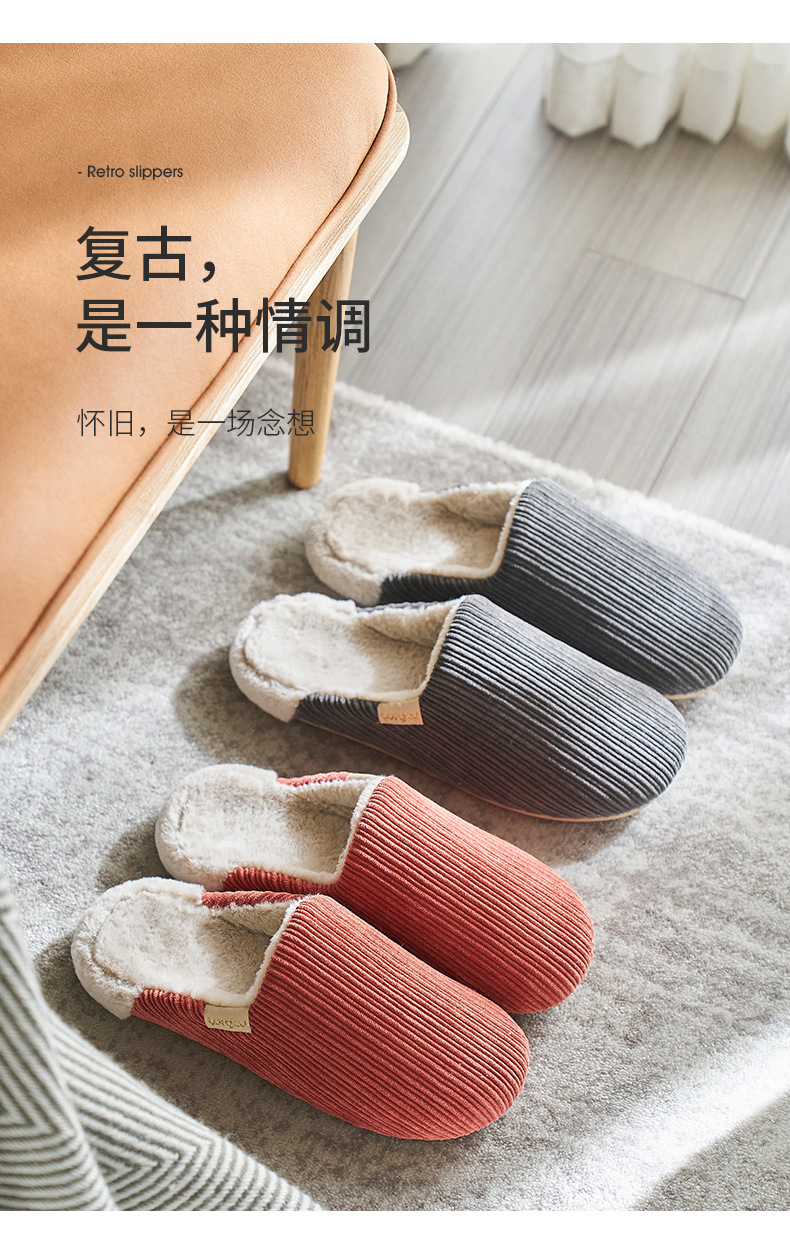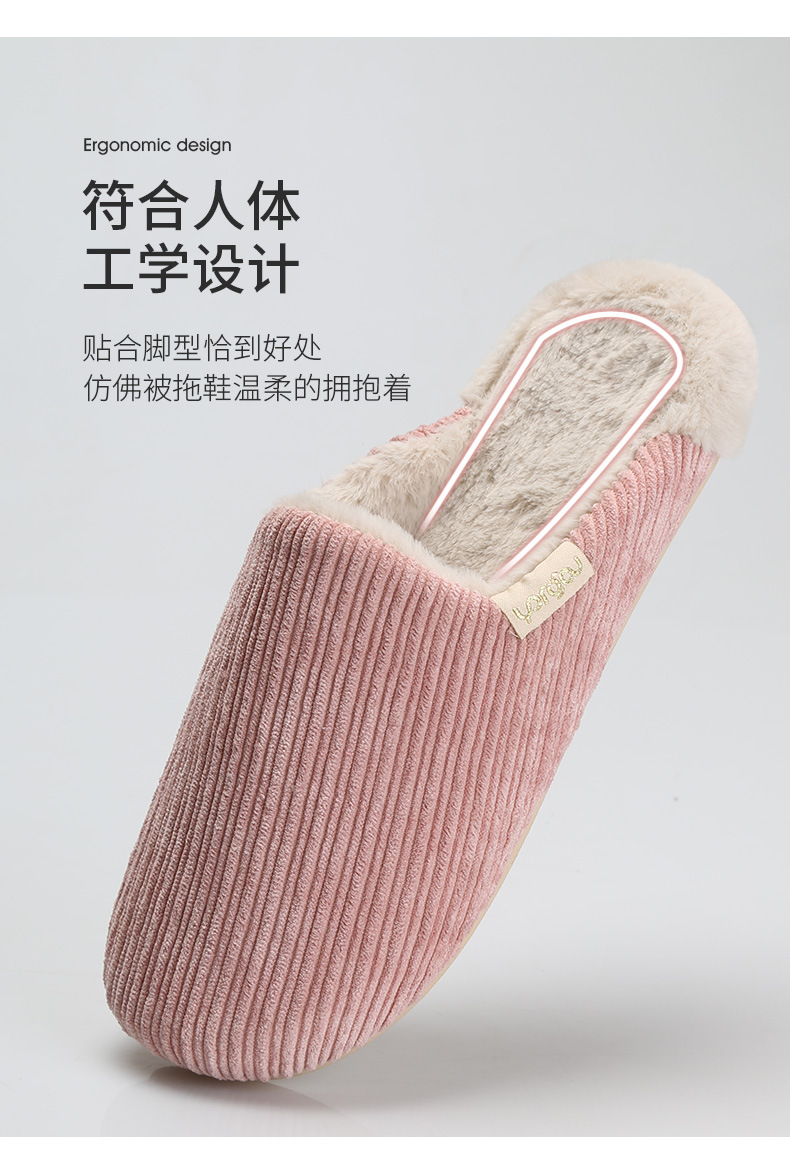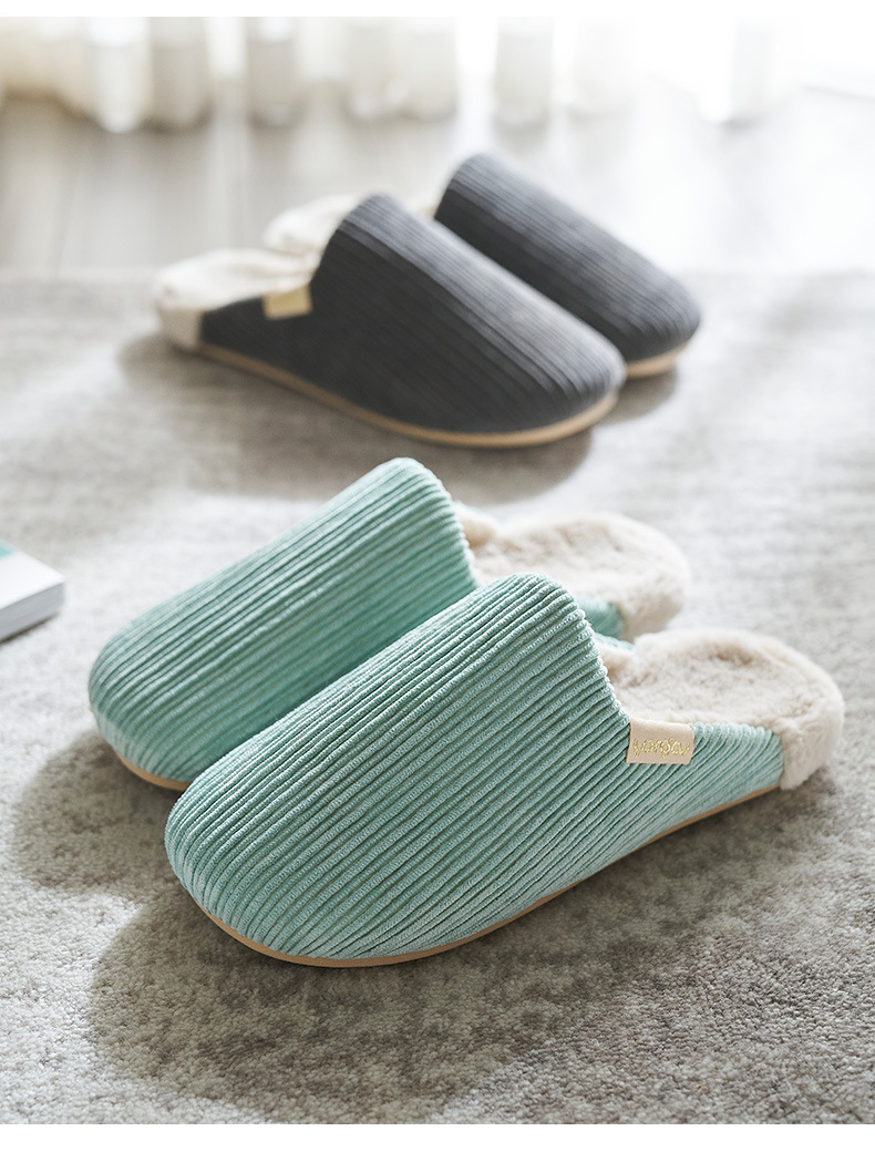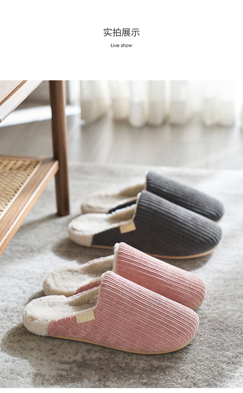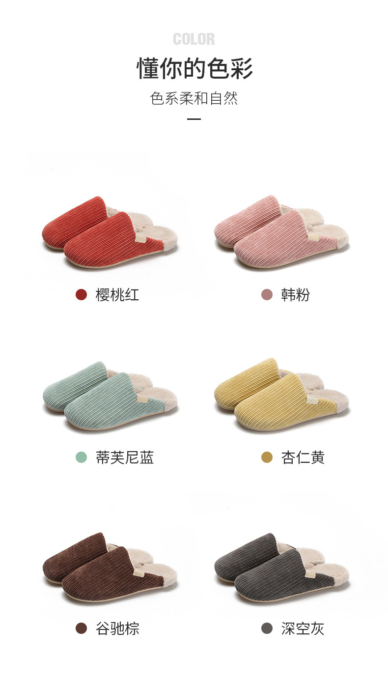 远港灯芯绒棉拖鞋家用保暖室内防滑情侣居家厚底毛绒拖鞋批发