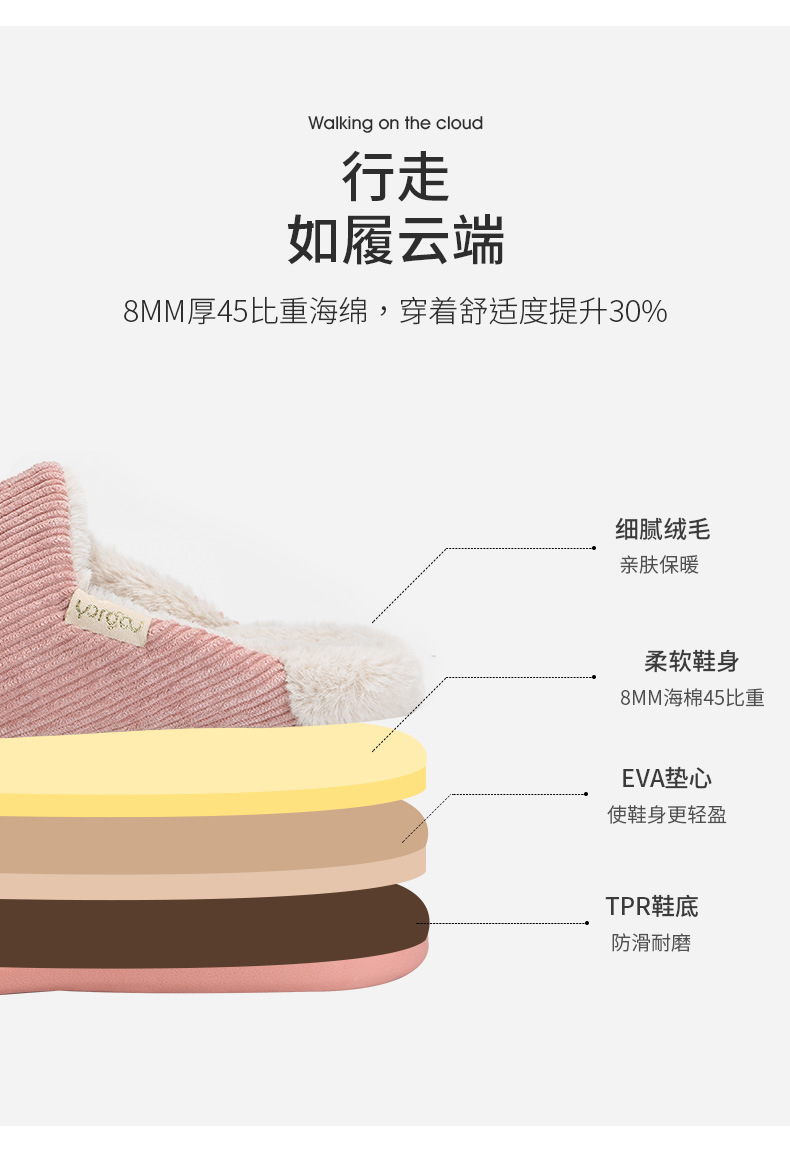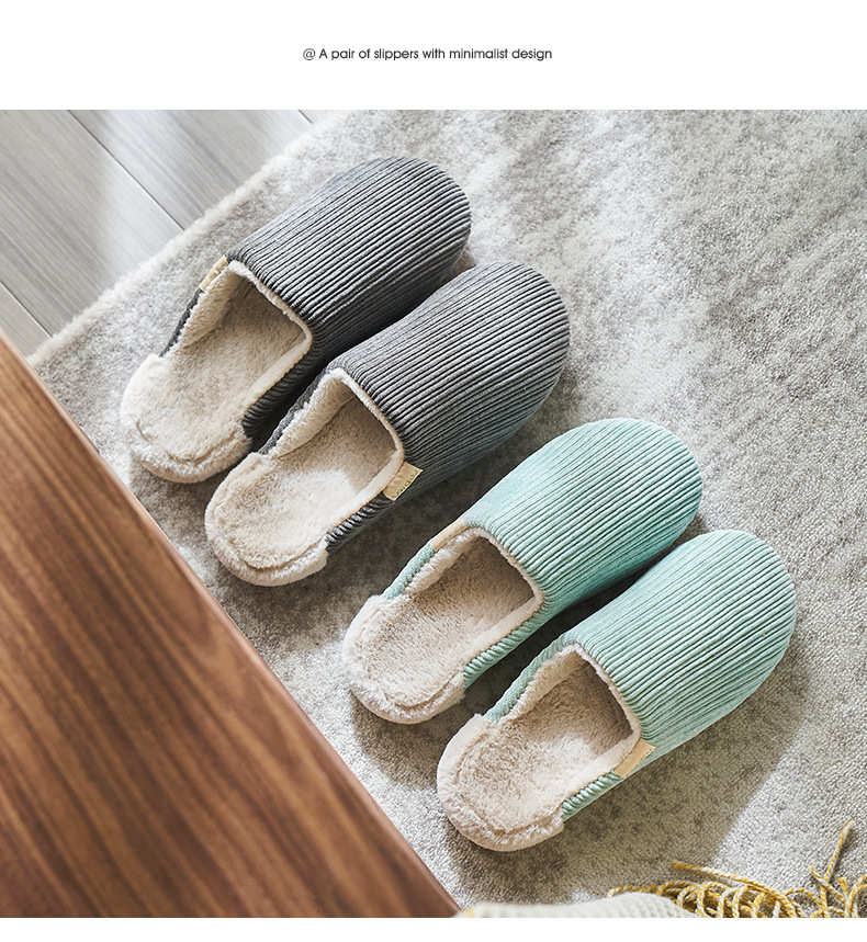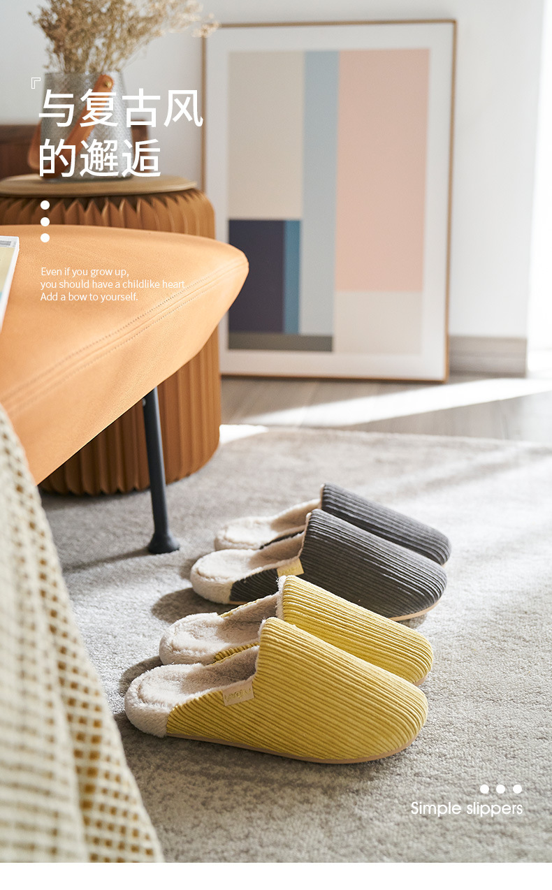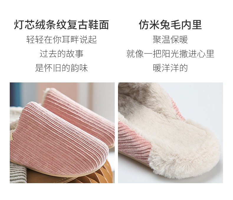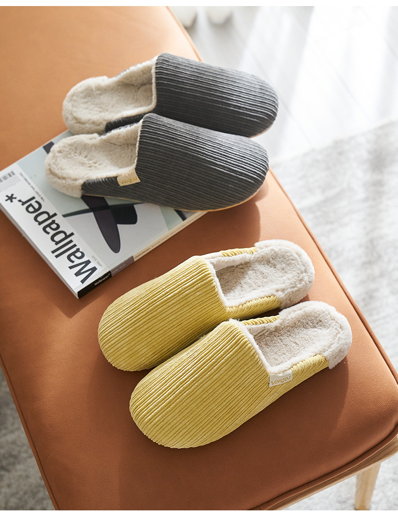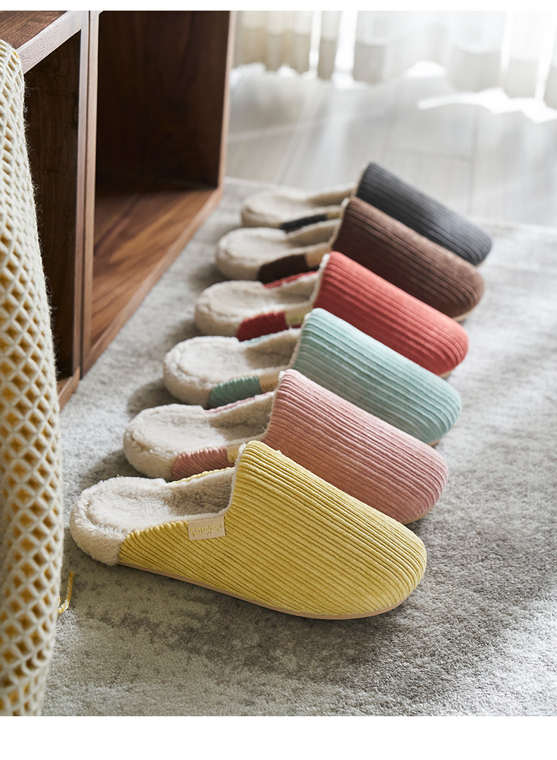 远港灯芯绒棉拖鞋家用保暖室内防滑情侣居家厚底毛绒拖鞋批发