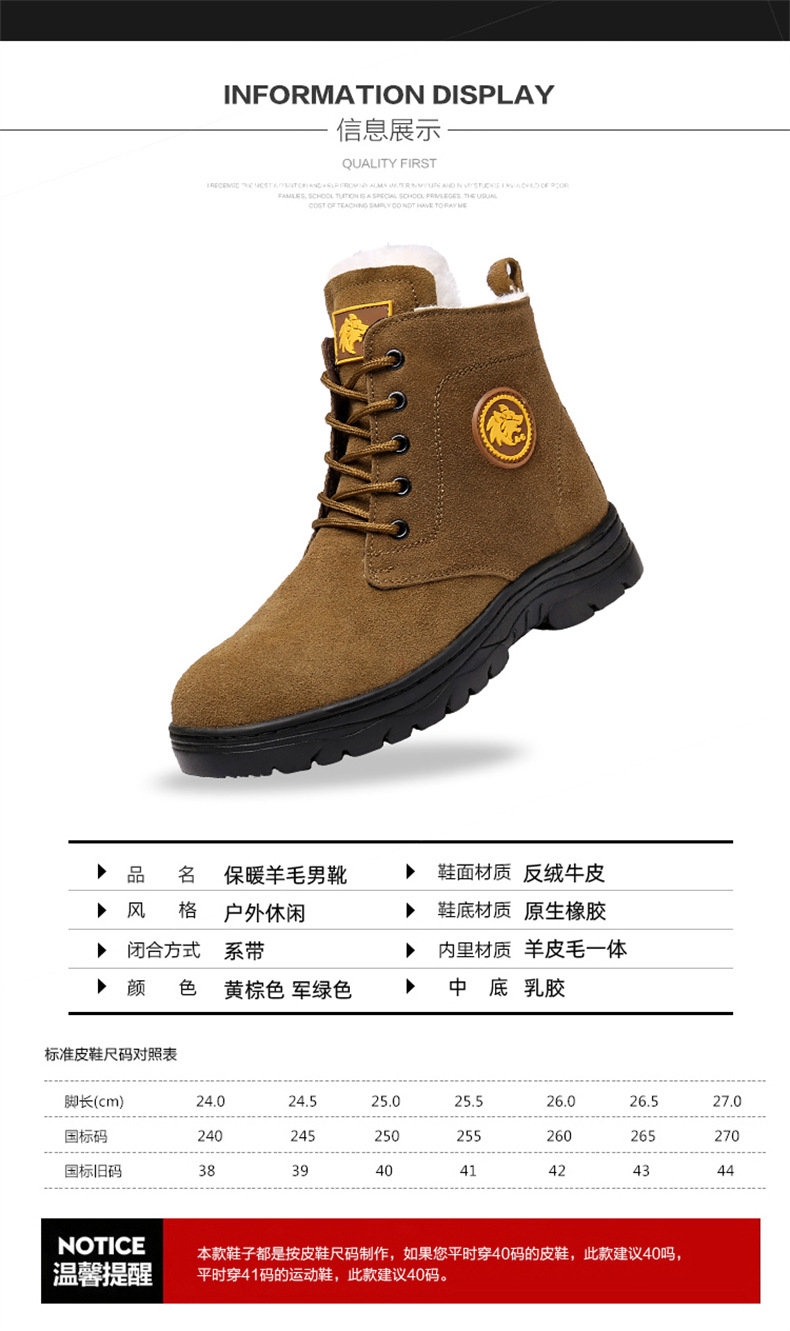 羊毛靴加绒加厚防寒保暖雪地靴男东北皮棉鞋超厚男士鞋子