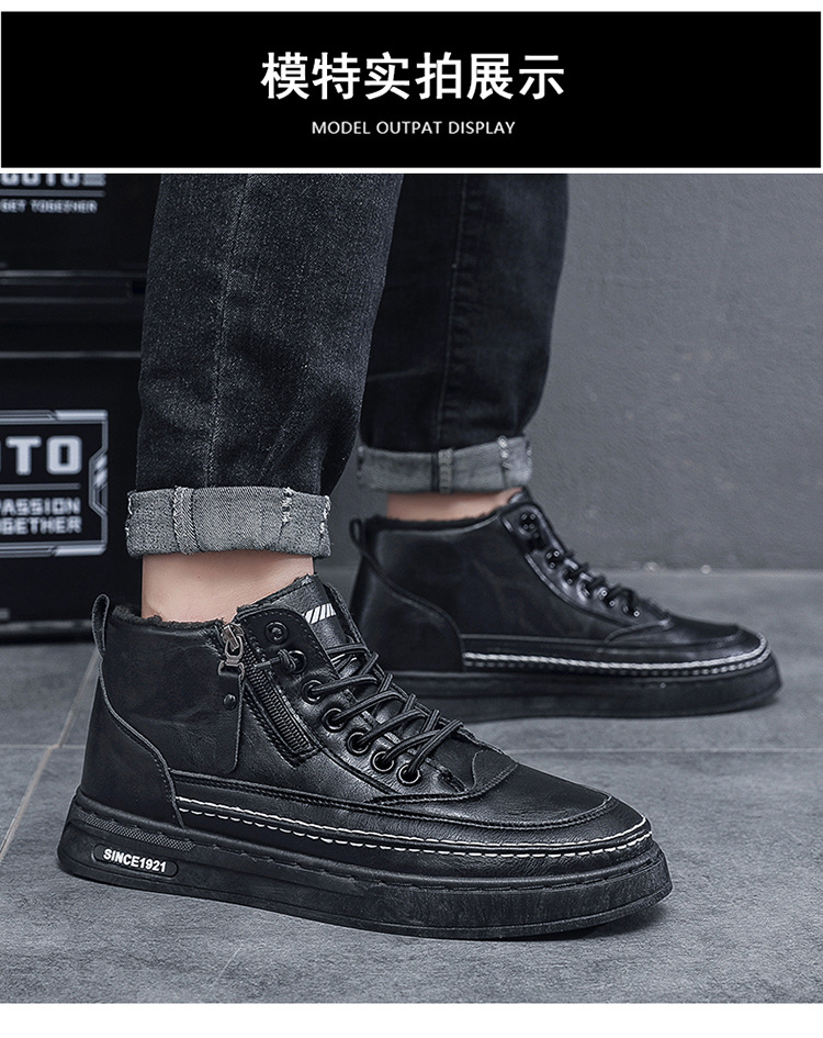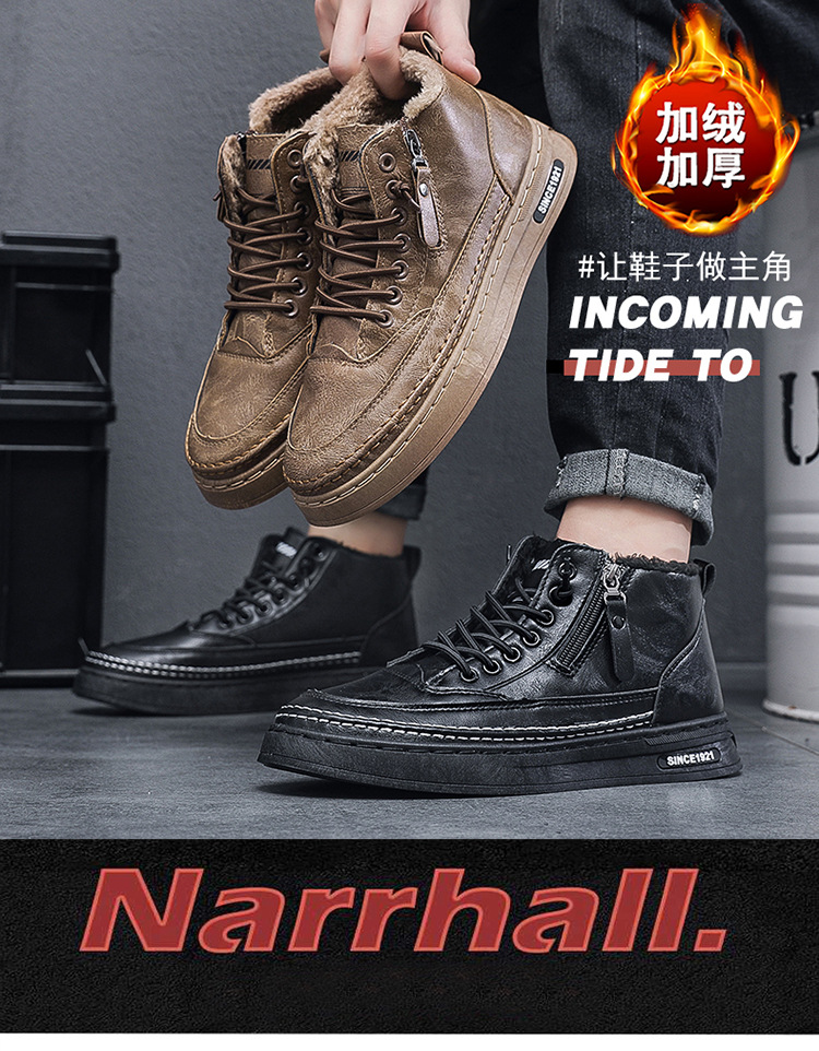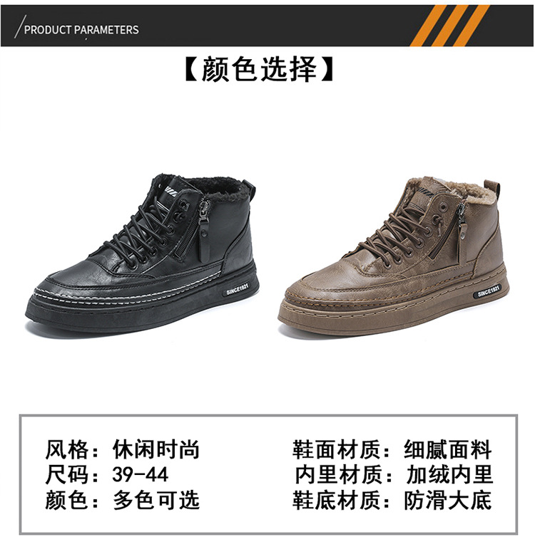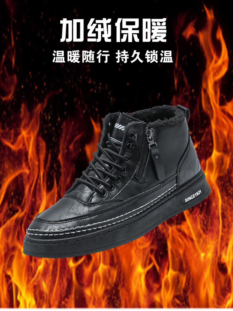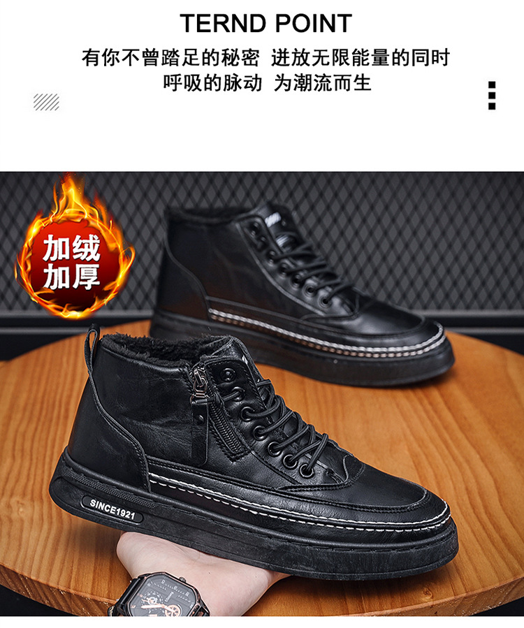 加绒加厚高帮鞋子男韩版百搭雪地靴男士厚底保暖棉鞋皮鞋潮鞋