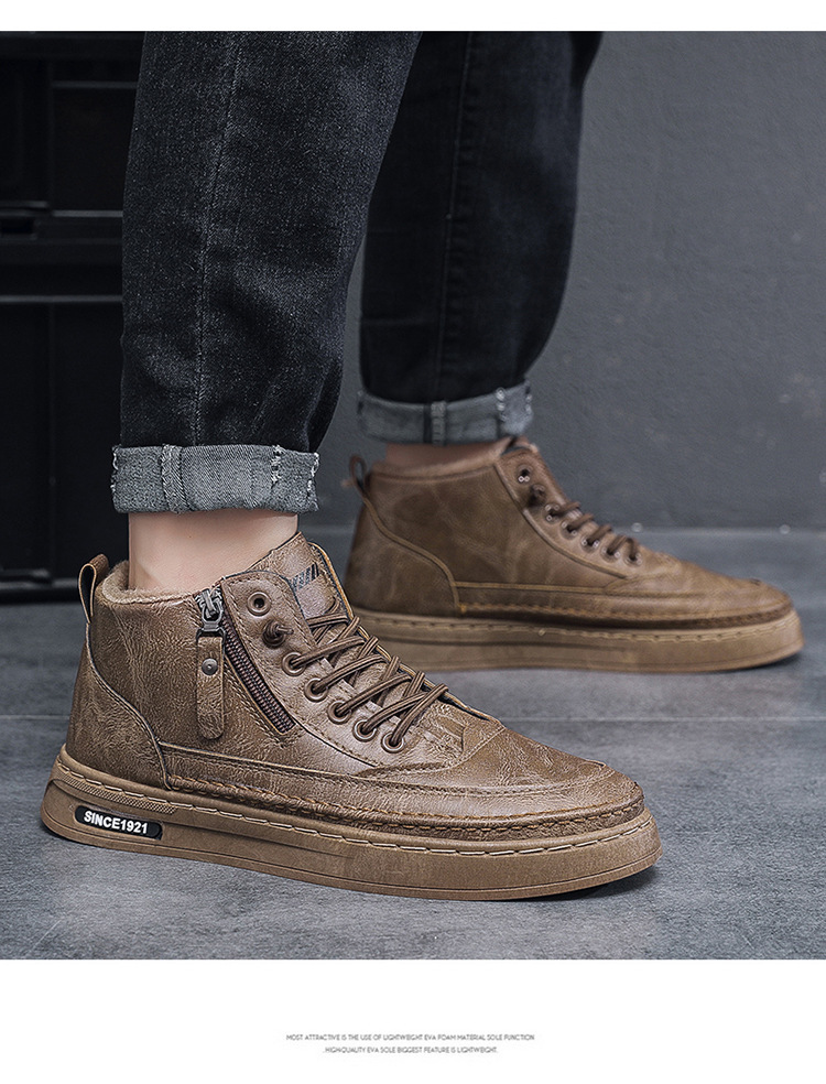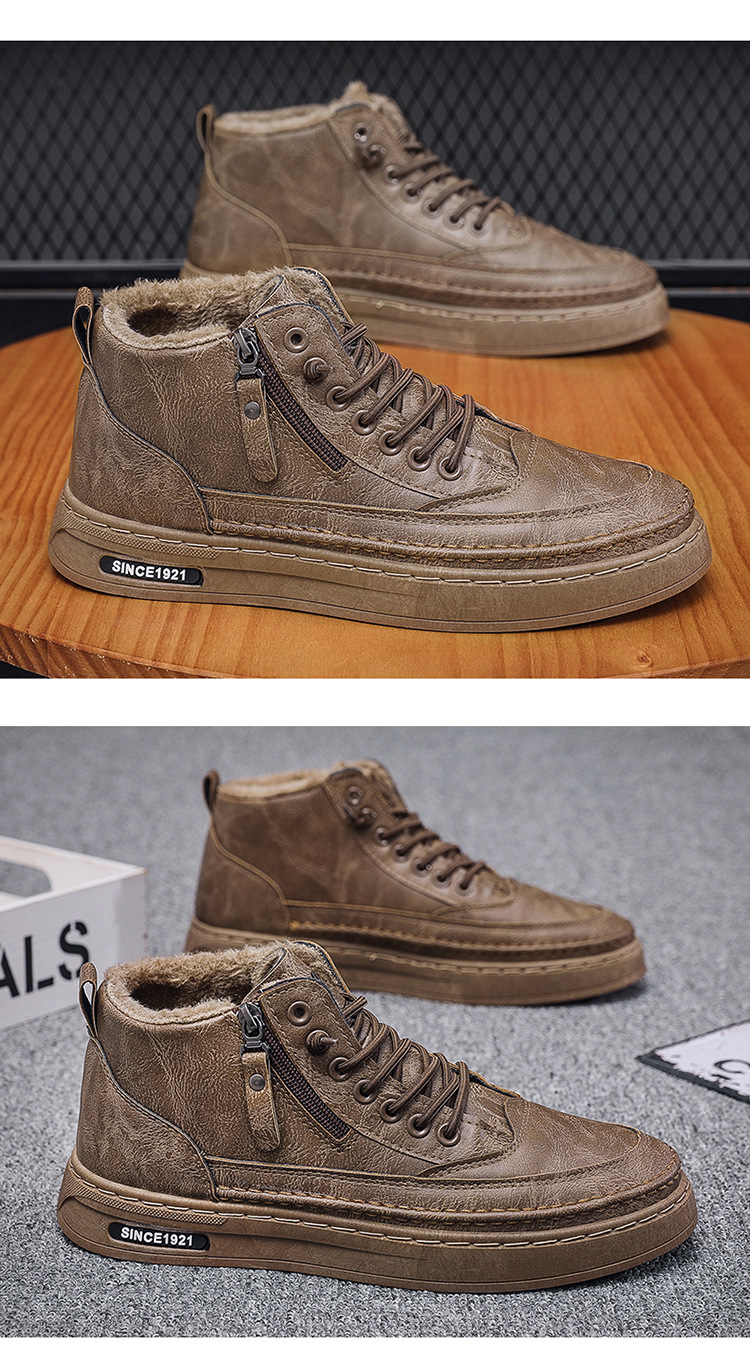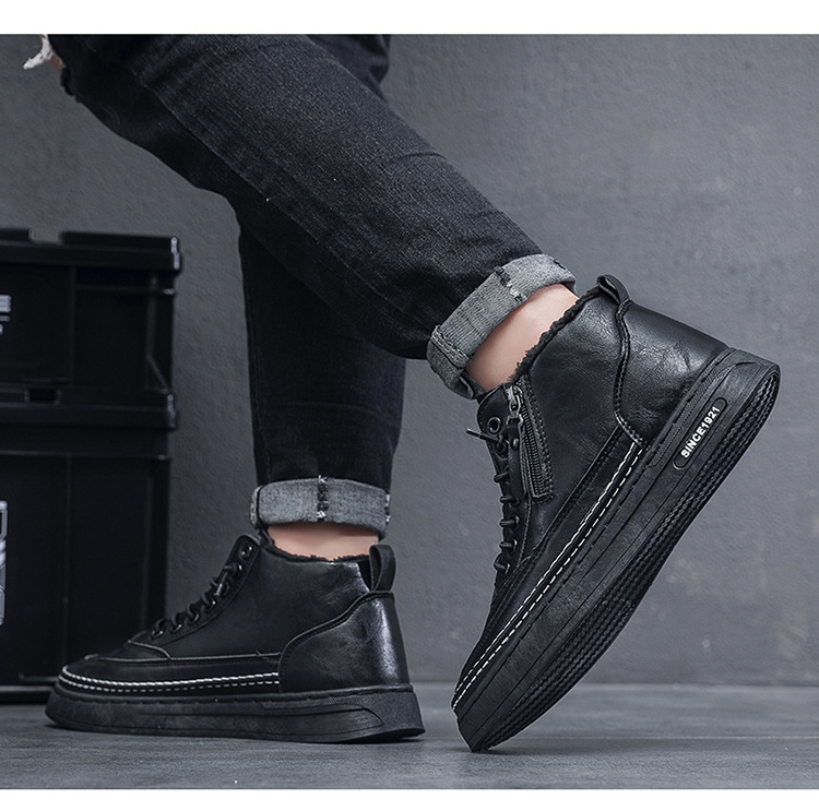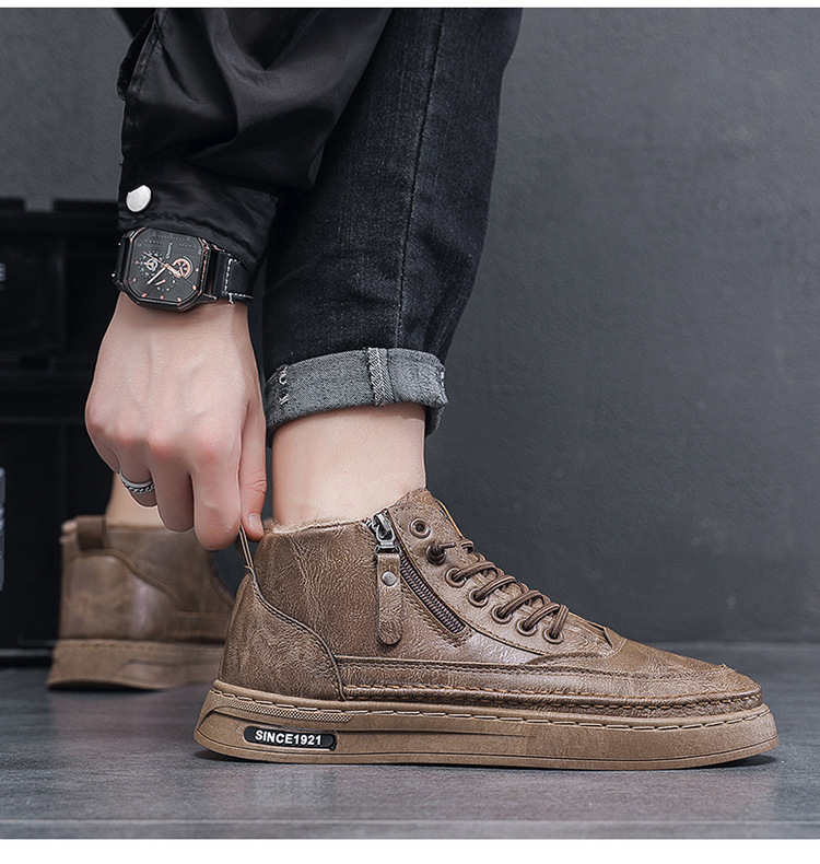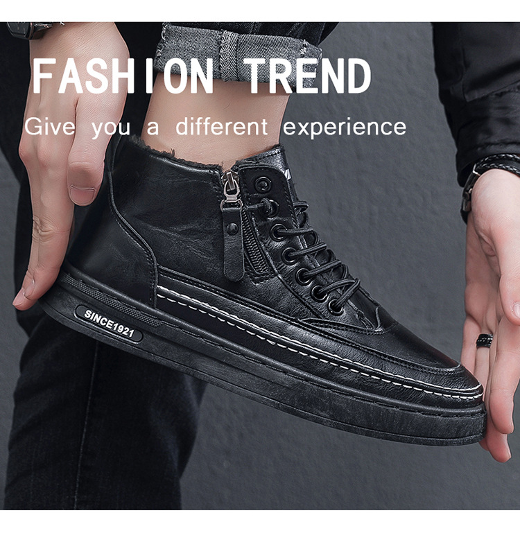加绒加厚高帮鞋子男韩版百搭雪地靴男士厚底保暖棉鞋皮鞋潮鞋