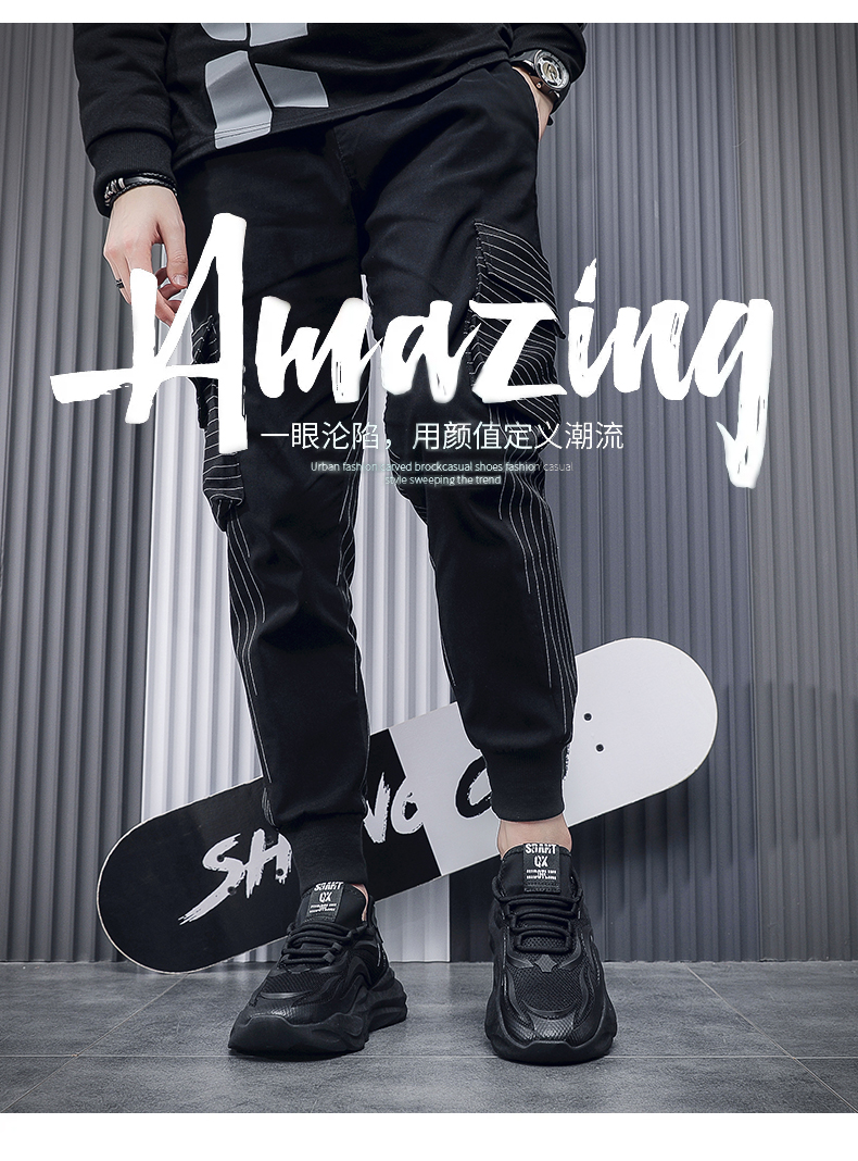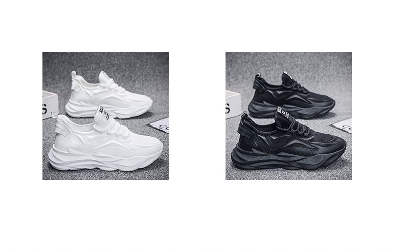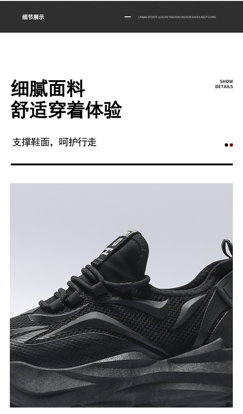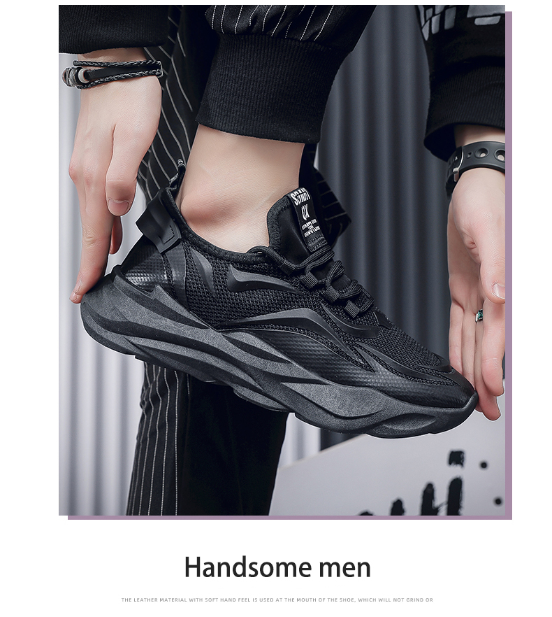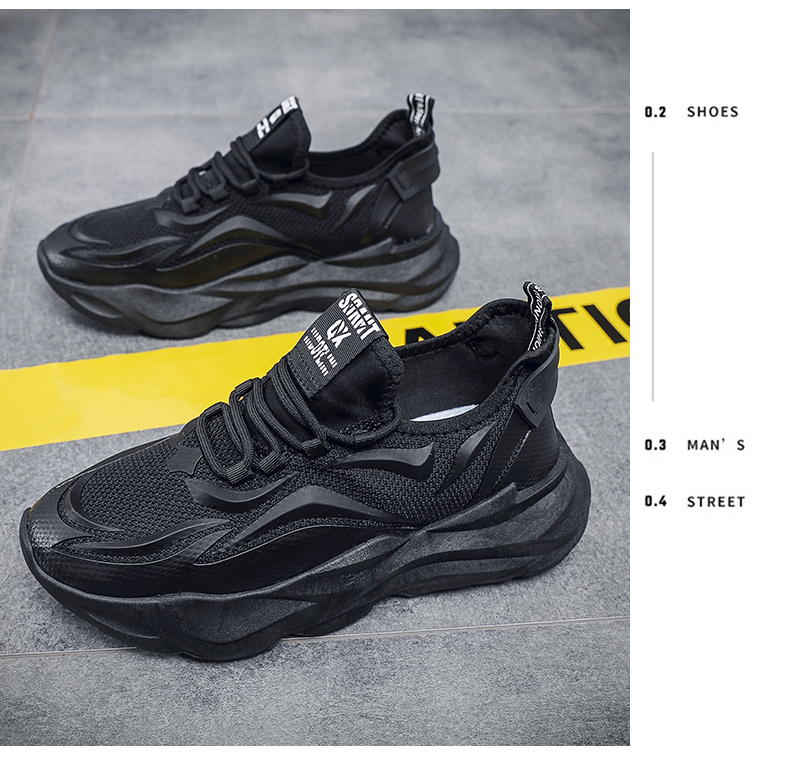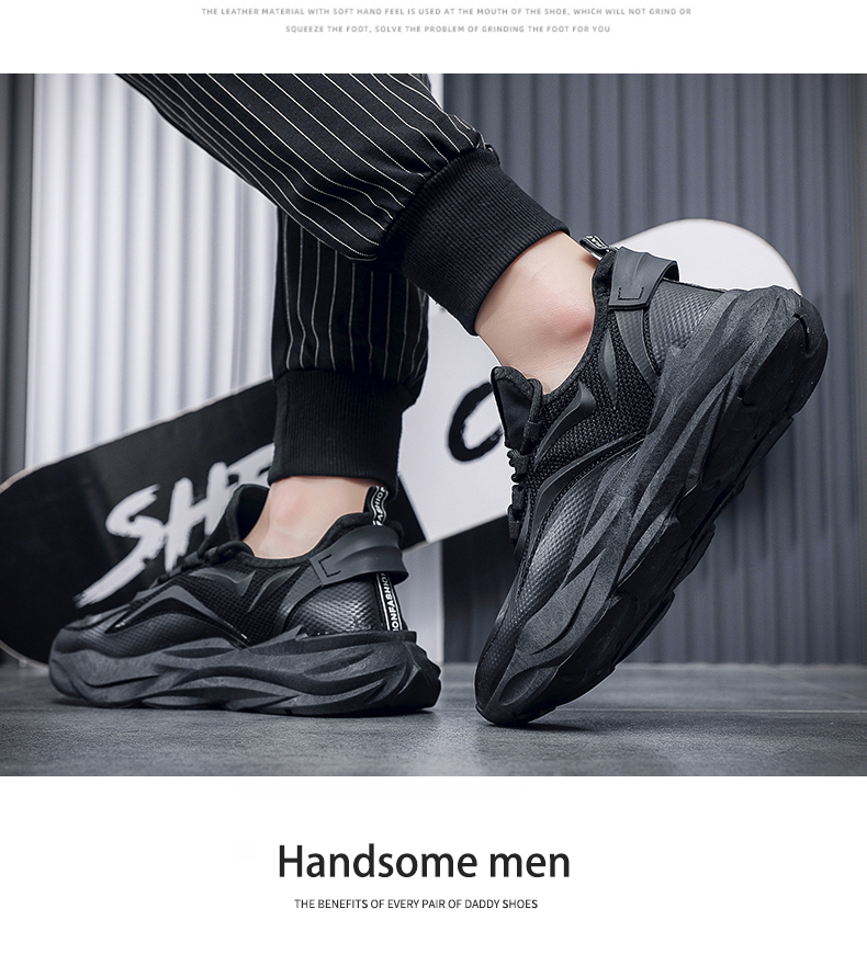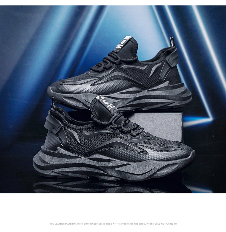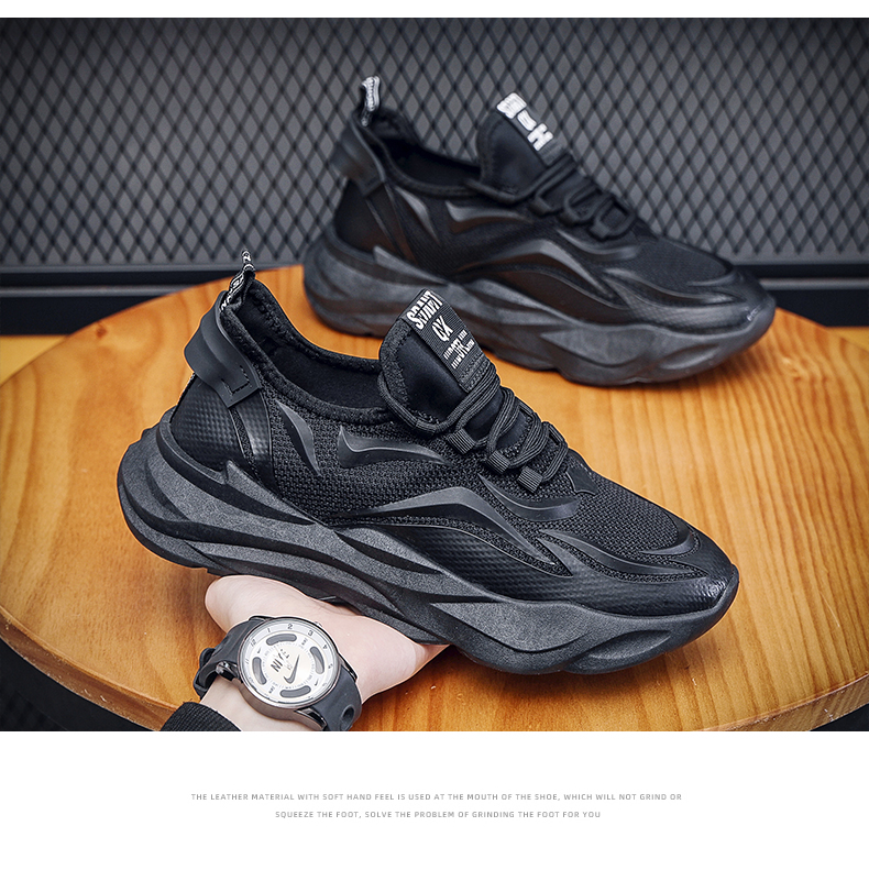 莆田纯黑色男鞋新款飞织运动休闲男款内增高加绒老爹潮鞋