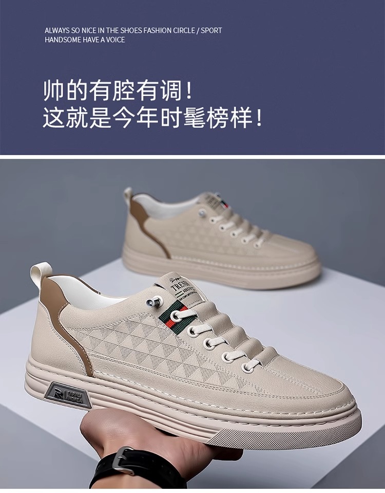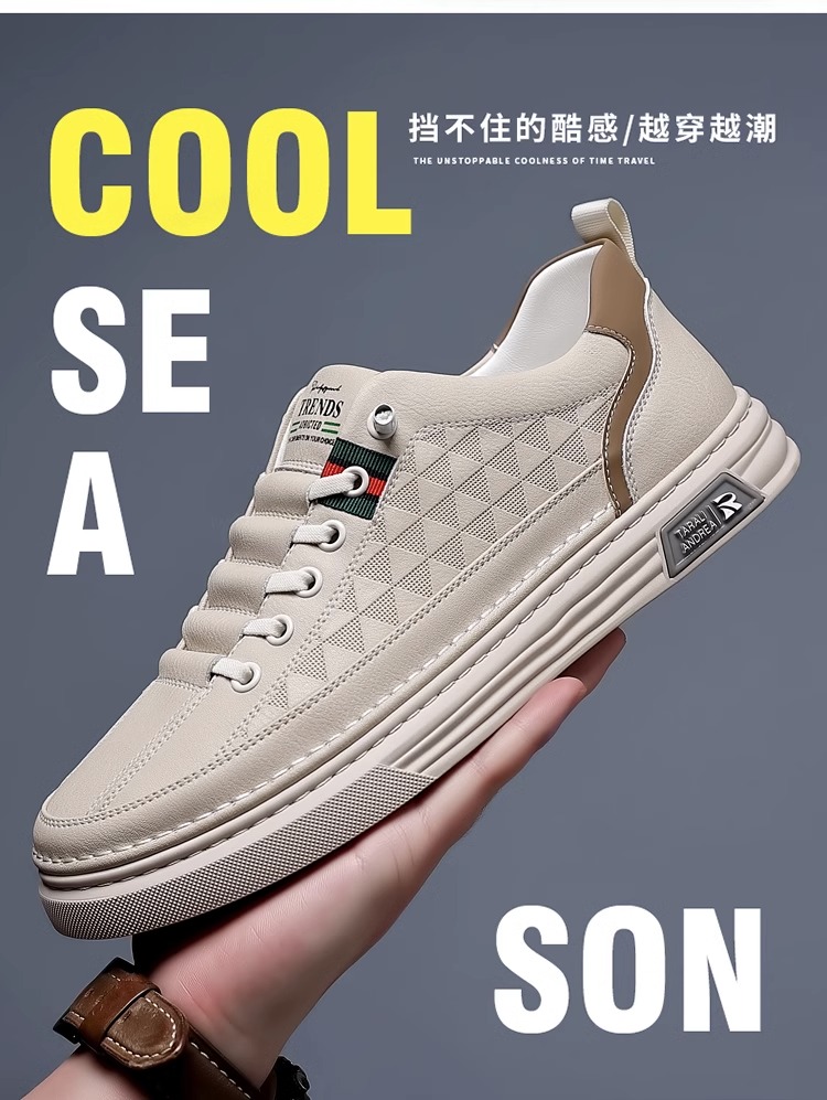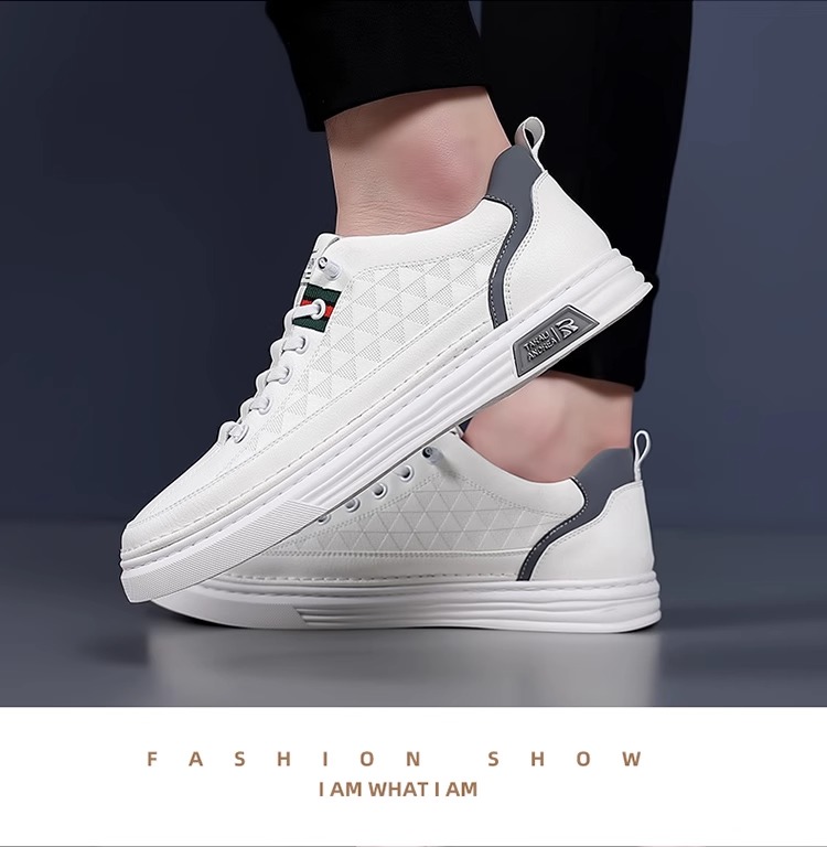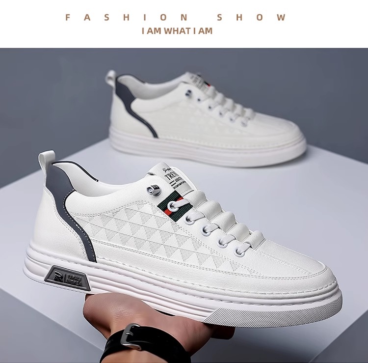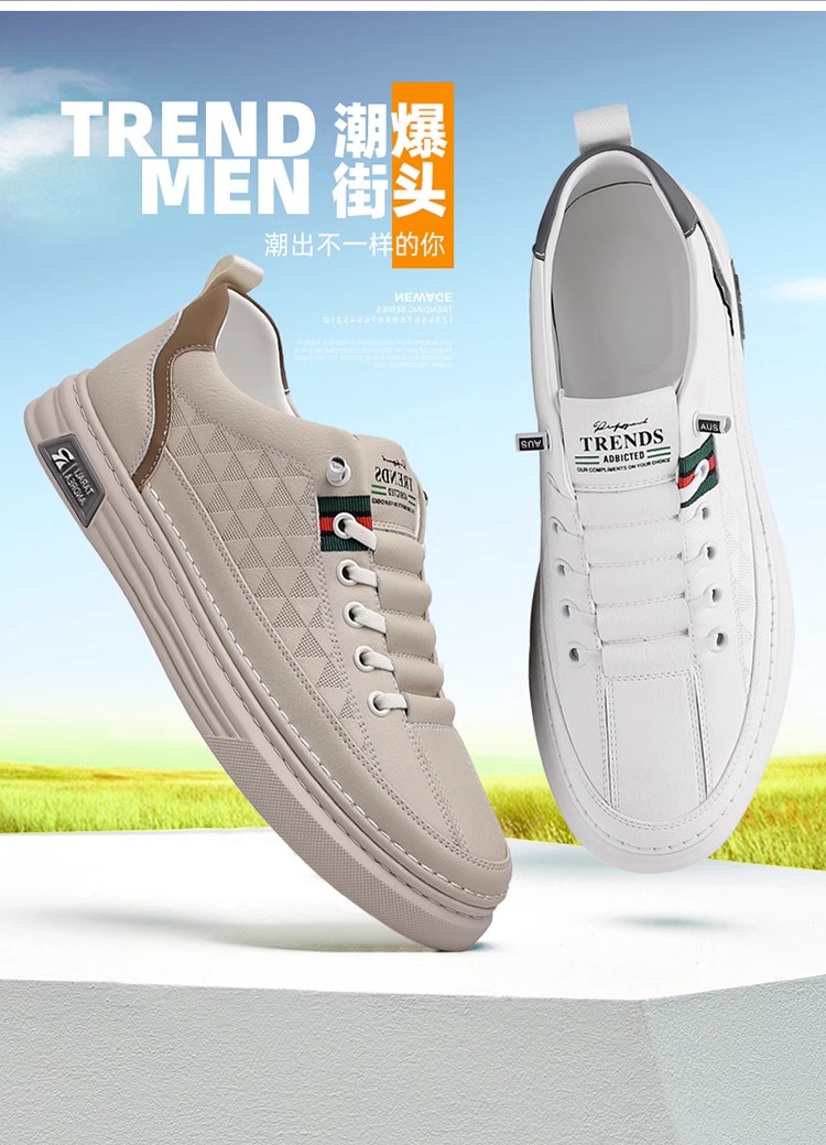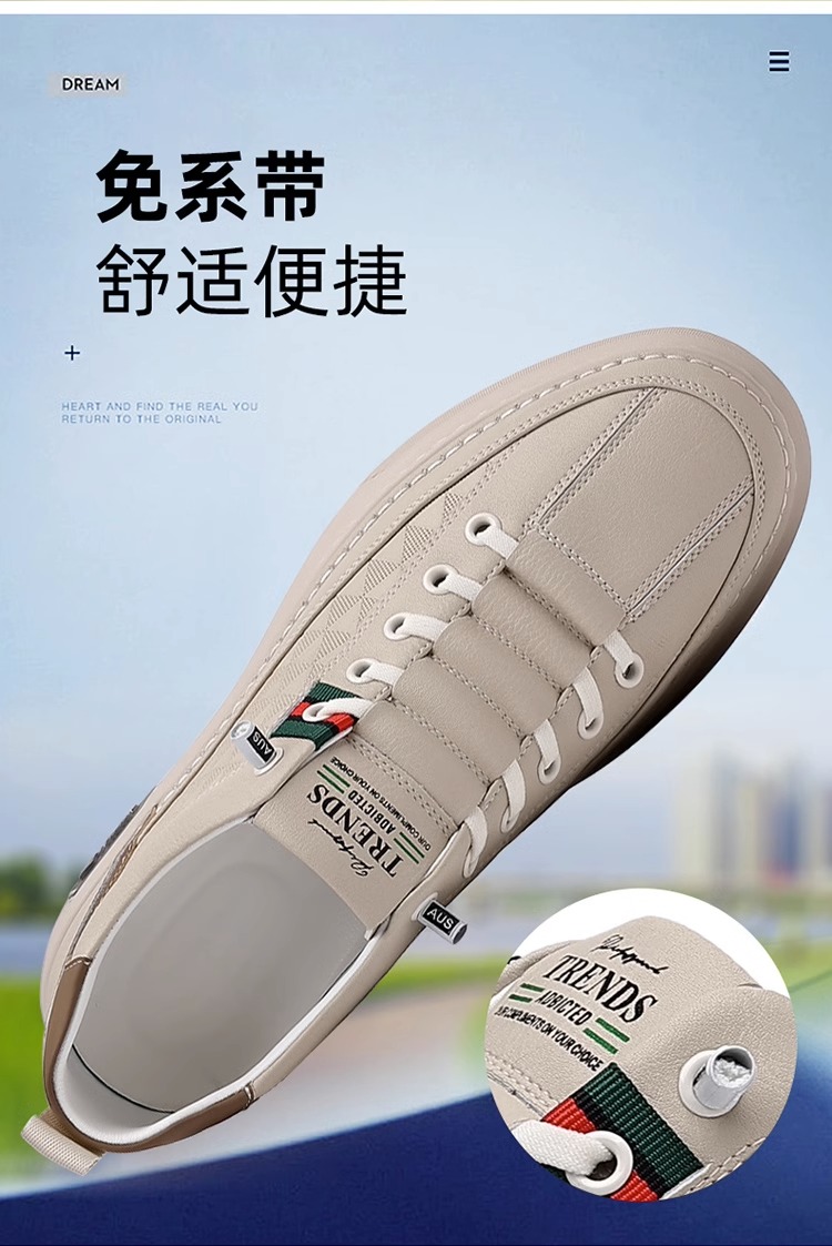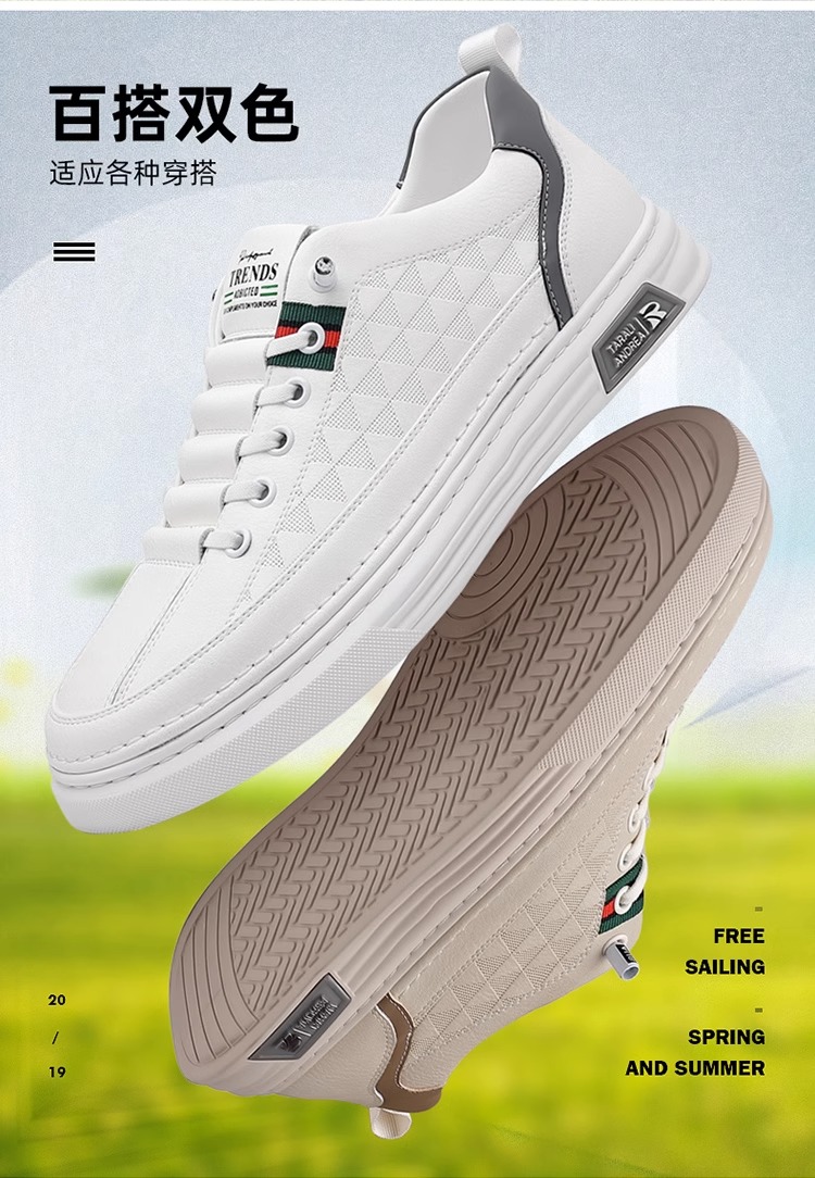男士皮鞋透气薄款潮流耐磨防滑小白鞋潮流搭配休闲运动板鞋一脚蹬