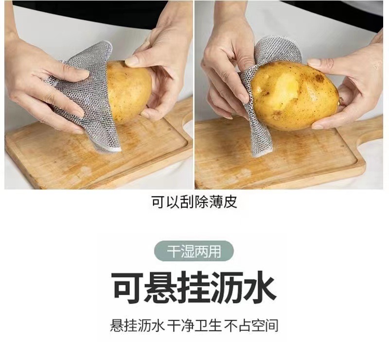 钢丝洗碗布清洁金属抹布网格不沾油银丝抹布厨房洗碗洗锅清洗手套