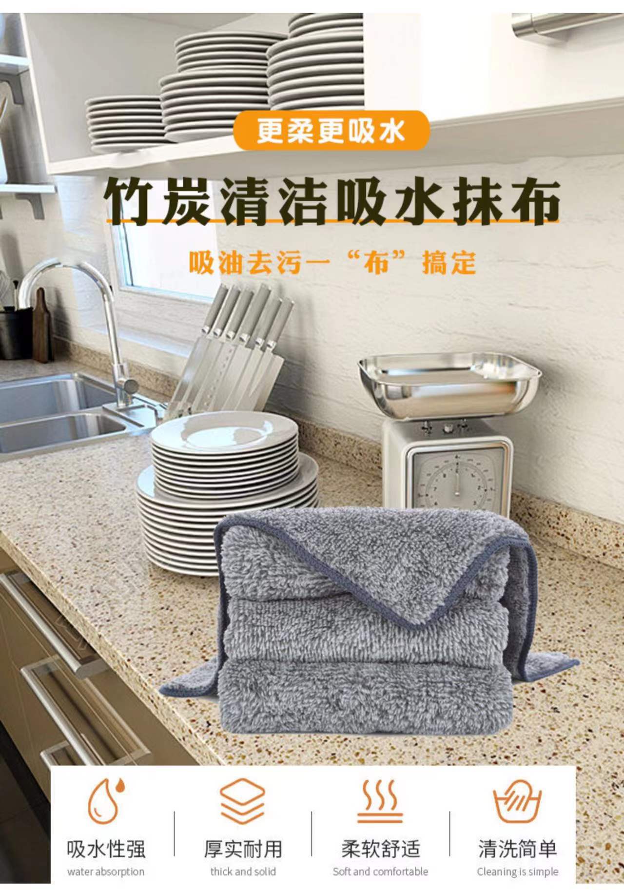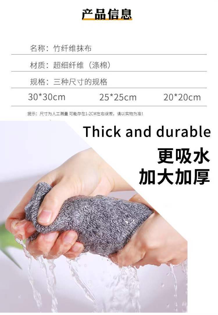 竹炭抹布吸水不掉毛洗碗布家用不沾油厨房清洁懒人去油纤维毛巾