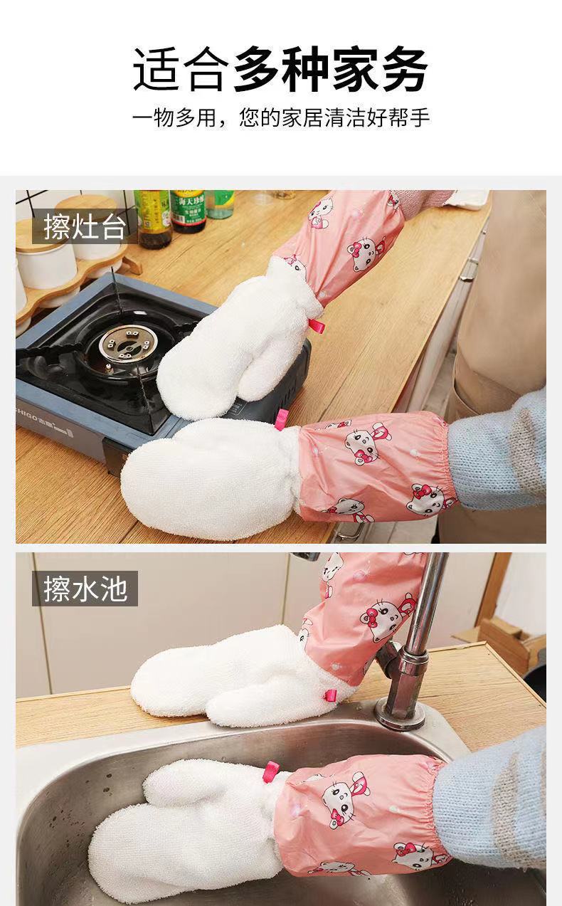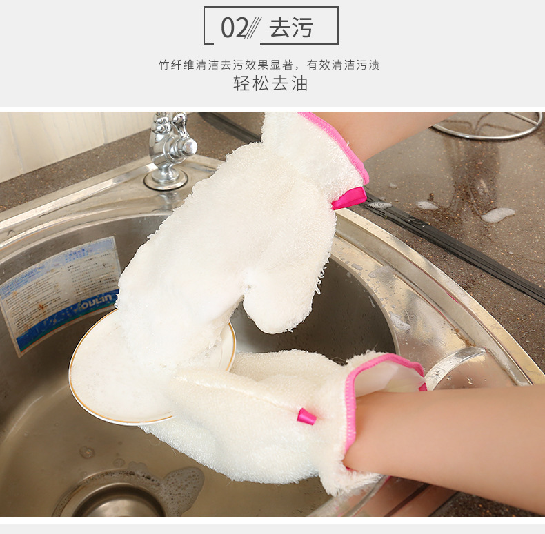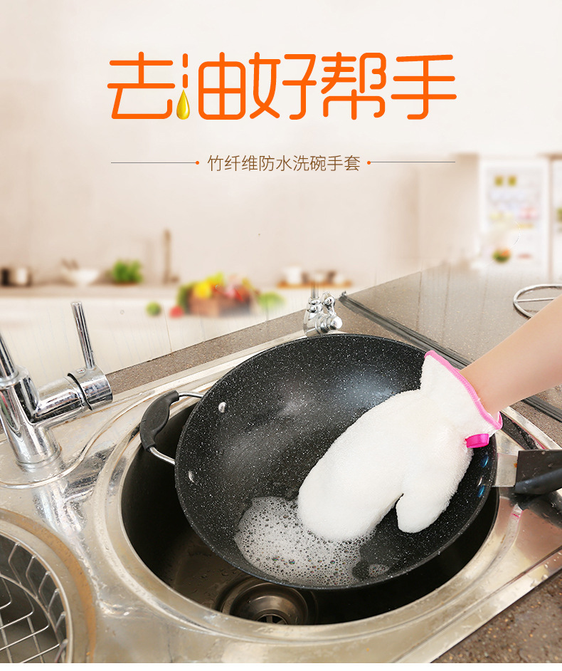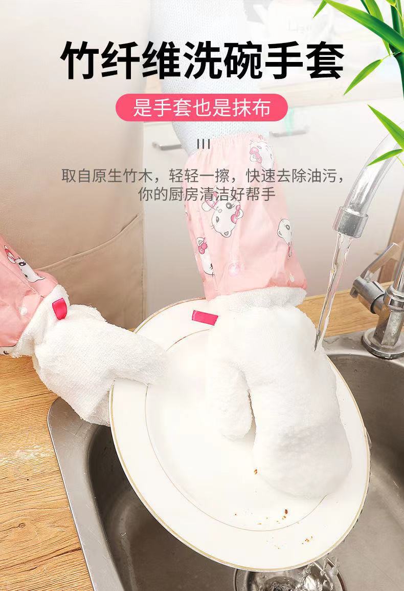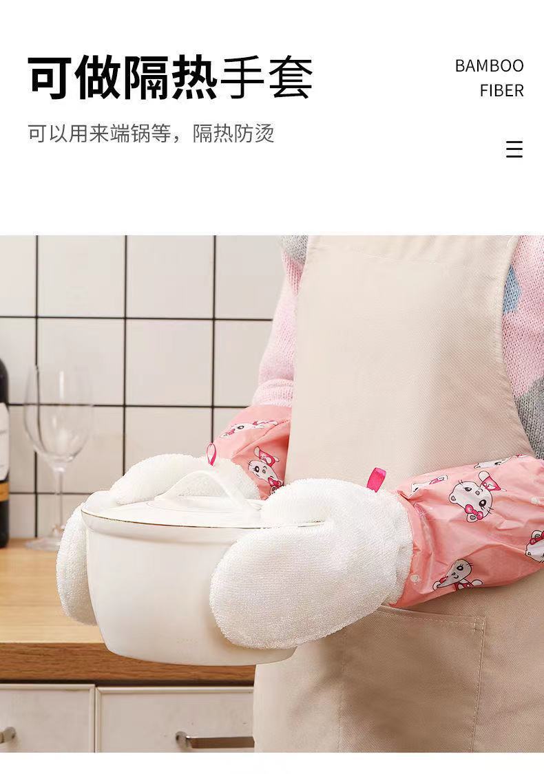 竹纤维银丝手套长款防水银丝抹布银丝手套洗碗巾厨房清洁家务手套