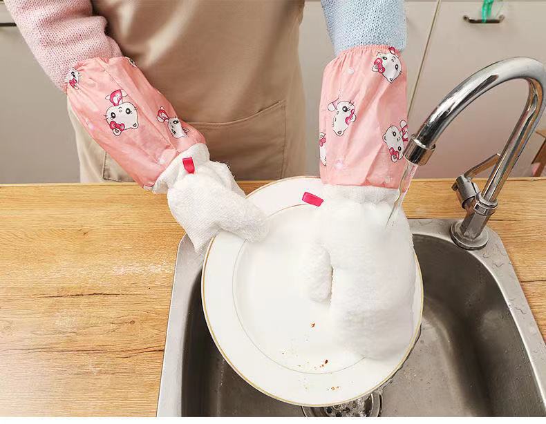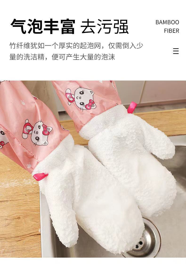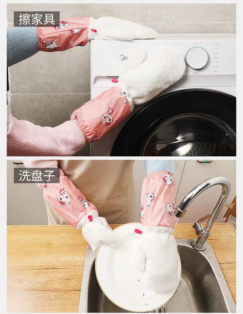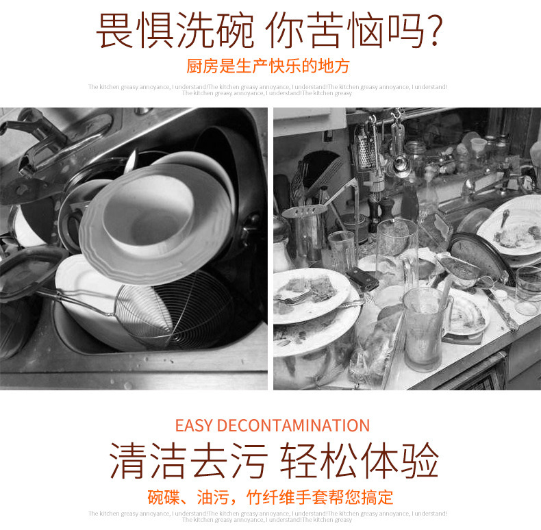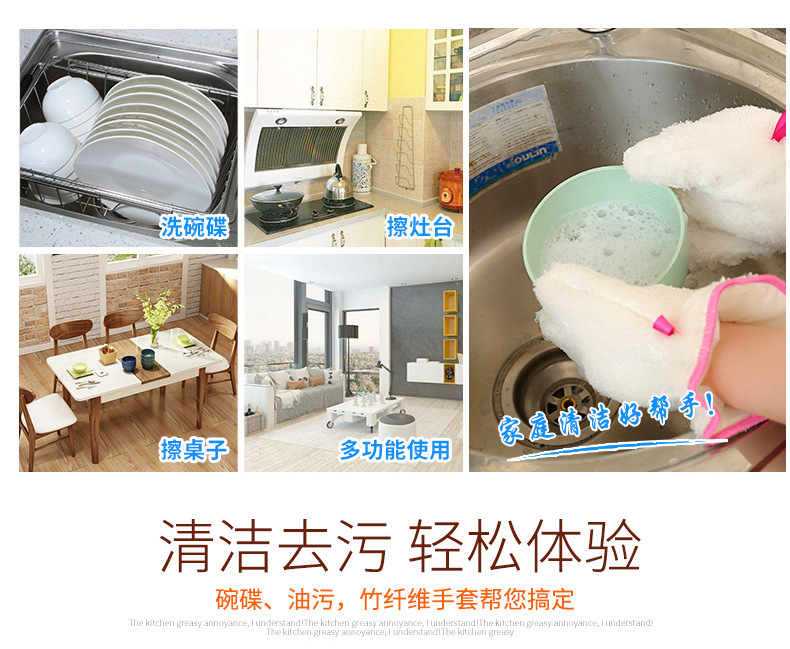 竹纤维银丝手套长款防水银丝抹布银丝手套洗碗巾厨房清洁家务手套