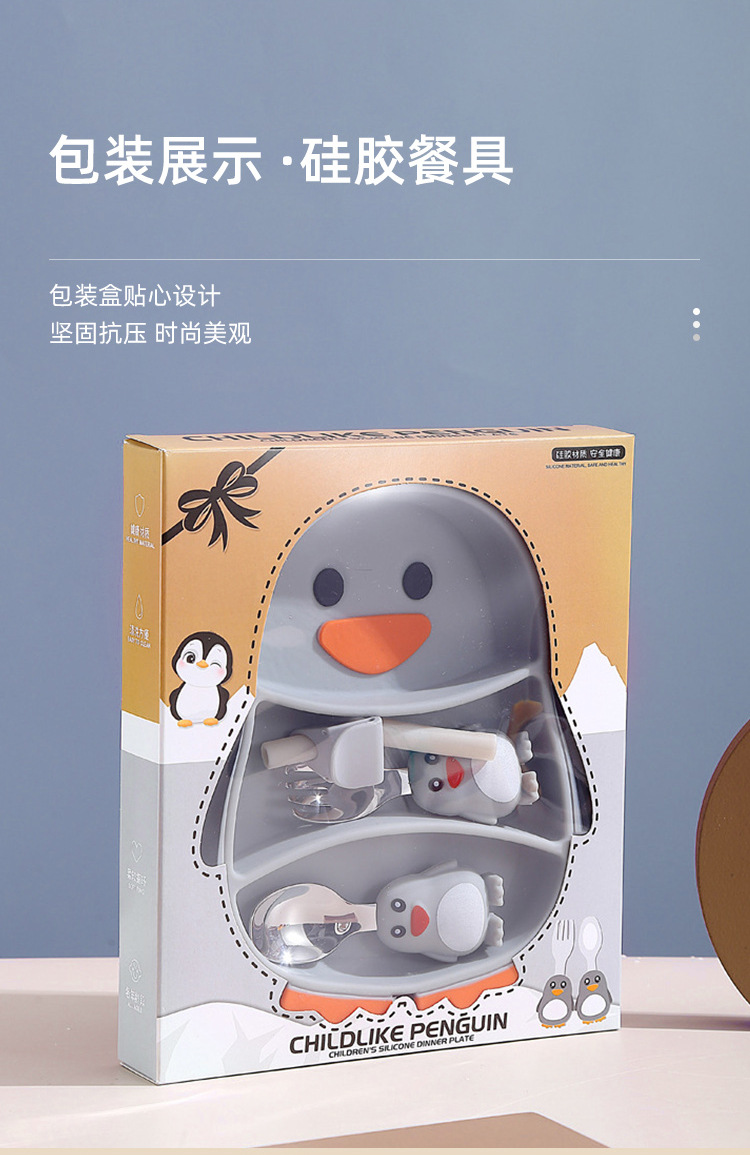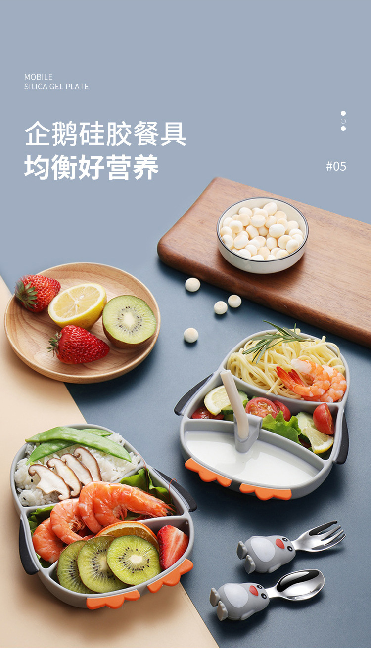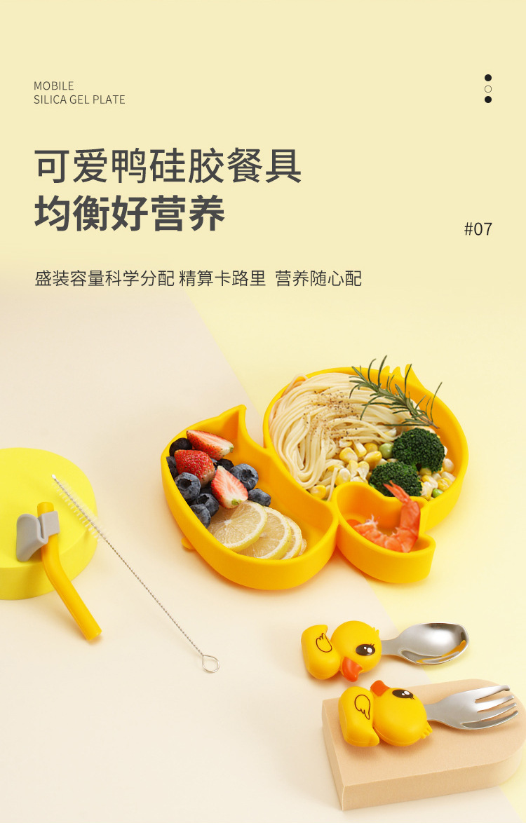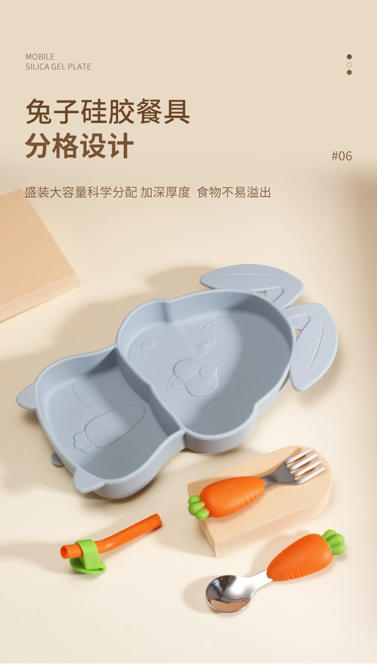 儿童硅胶餐盘套装宝宝卡通辅食盘子婴儿喂养餐具分格菜盘母婴用品