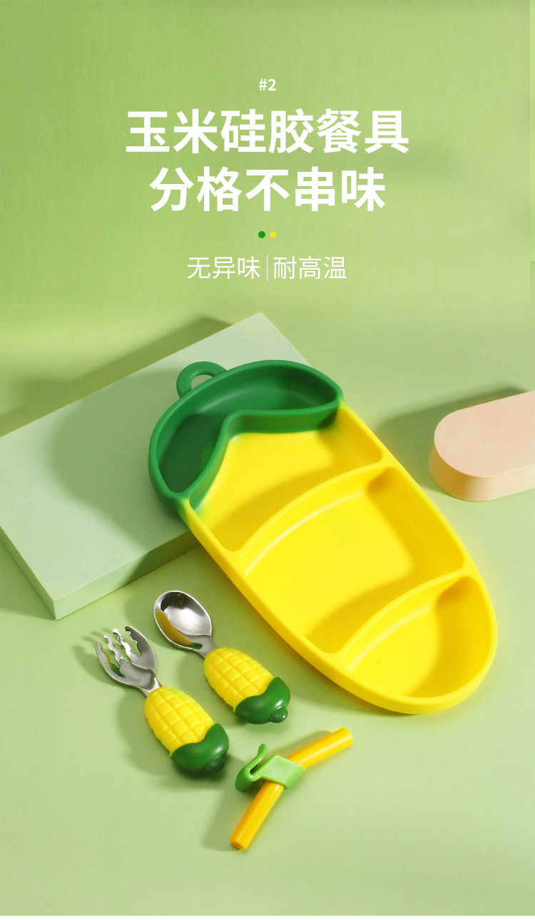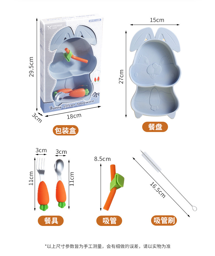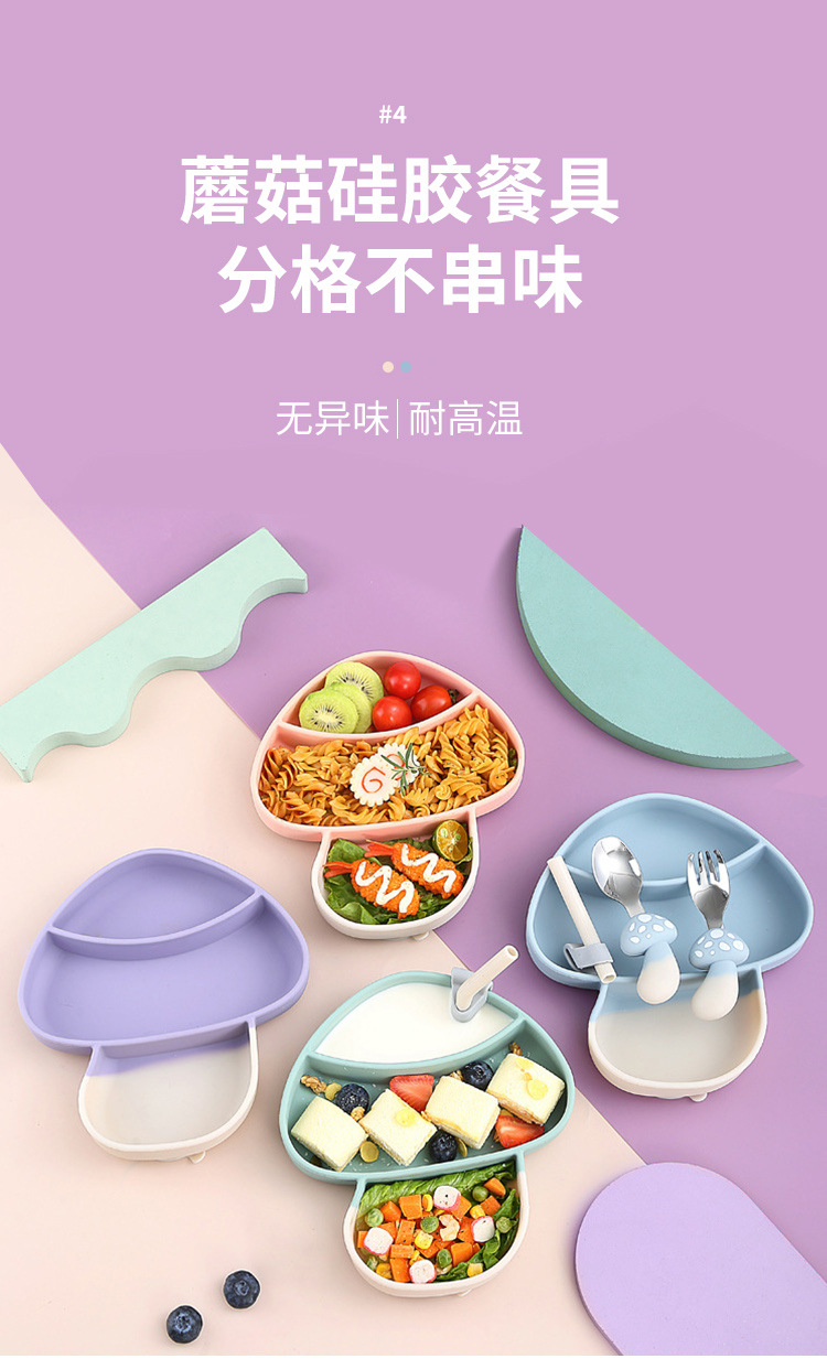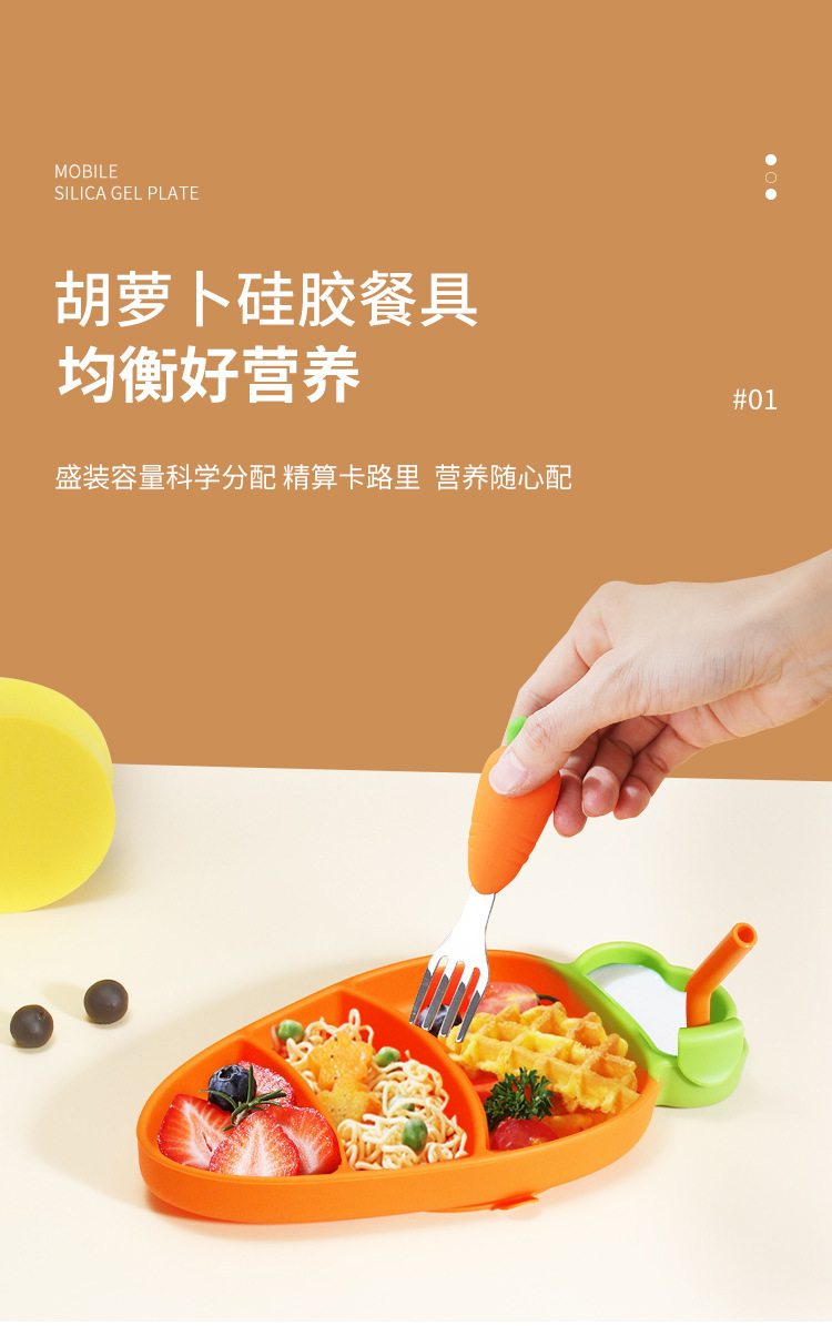 儿童硅胶餐盘套装宝宝卡通辅食盘子婴儿喂养餐具分格菜盘母婴用品