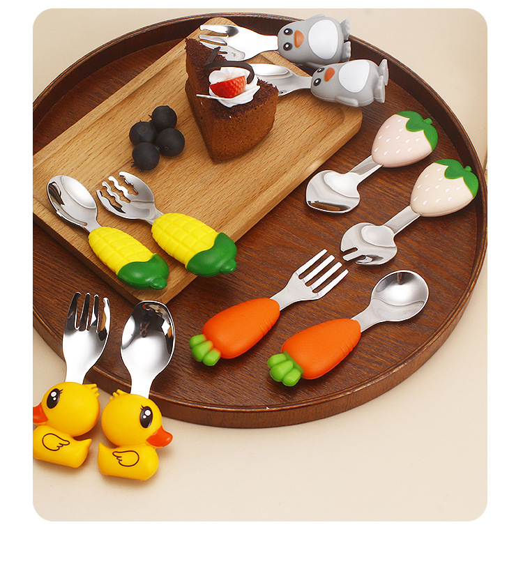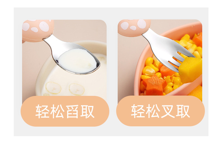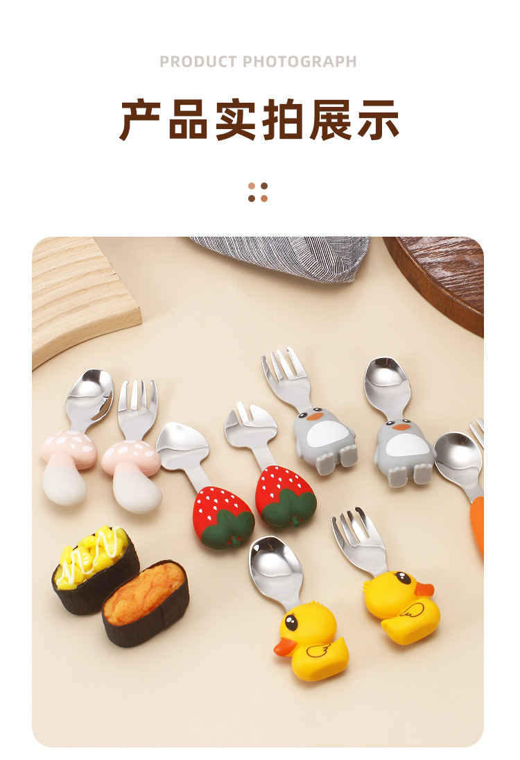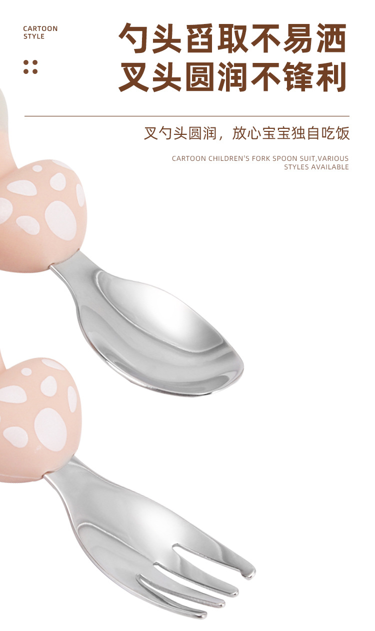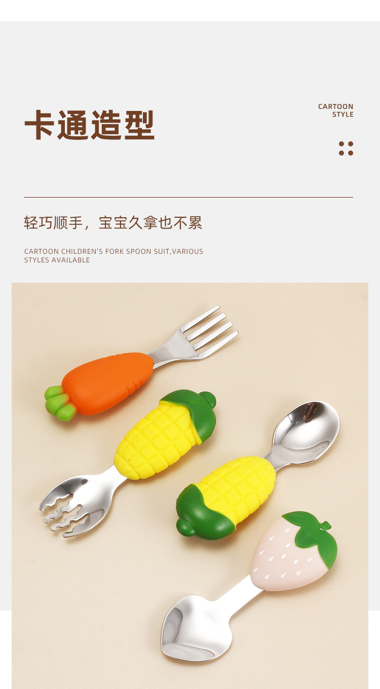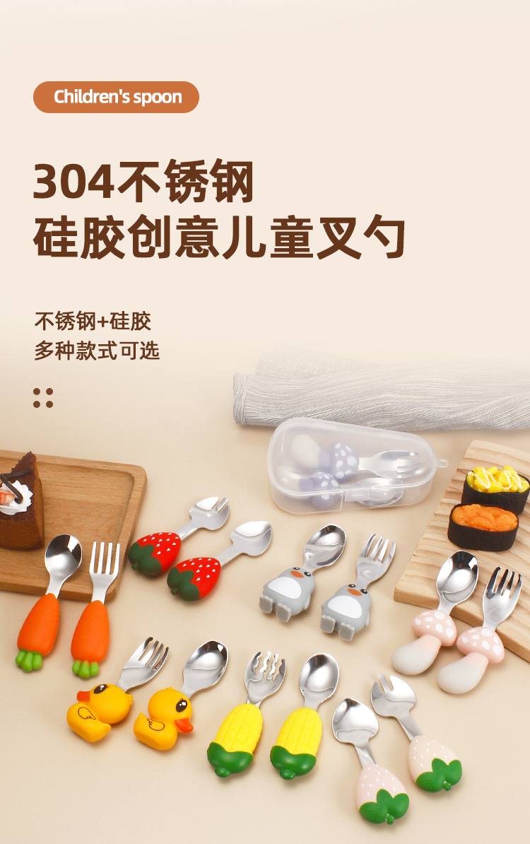 304不锈钢儿童餐具创意卡通勺叉宝宝辅食勺可爱硅胶餐具母婴用品