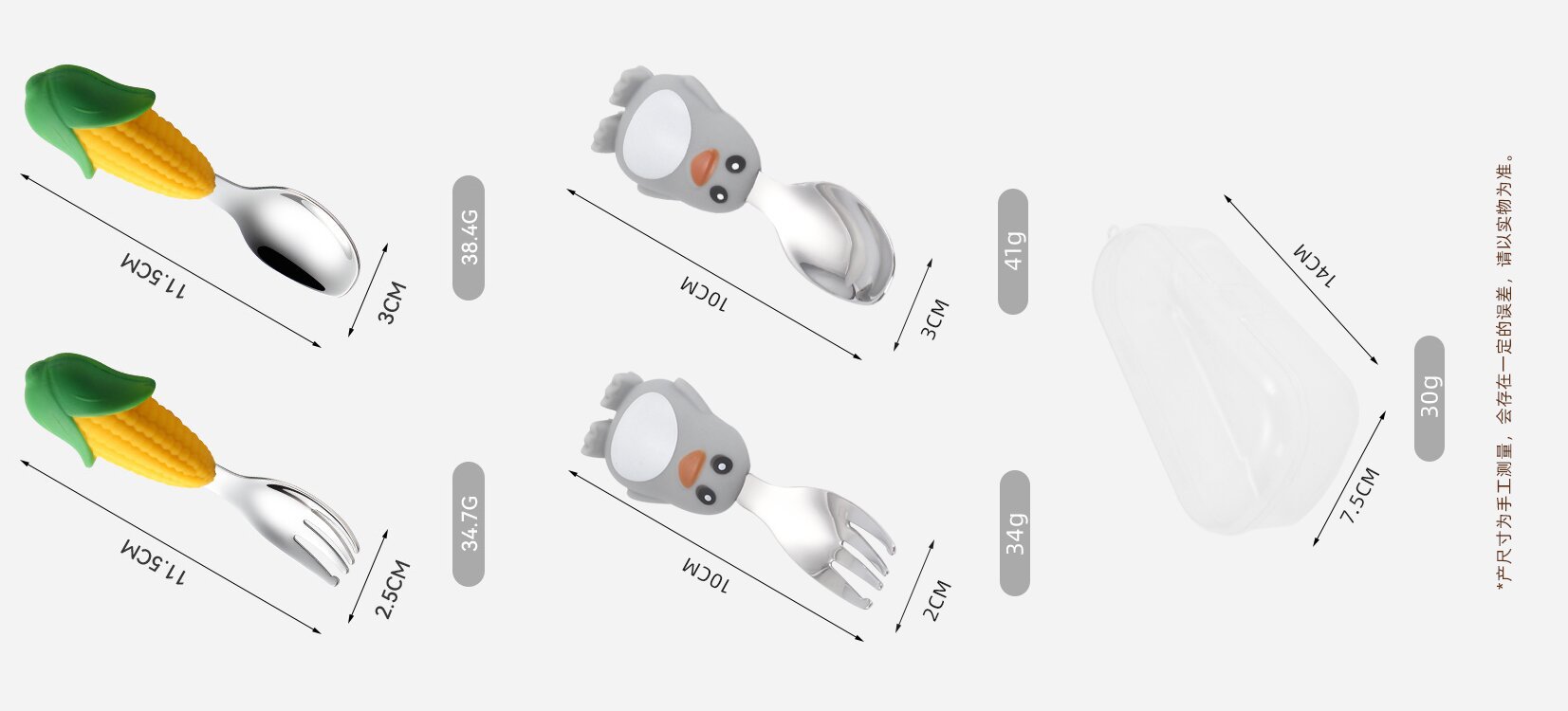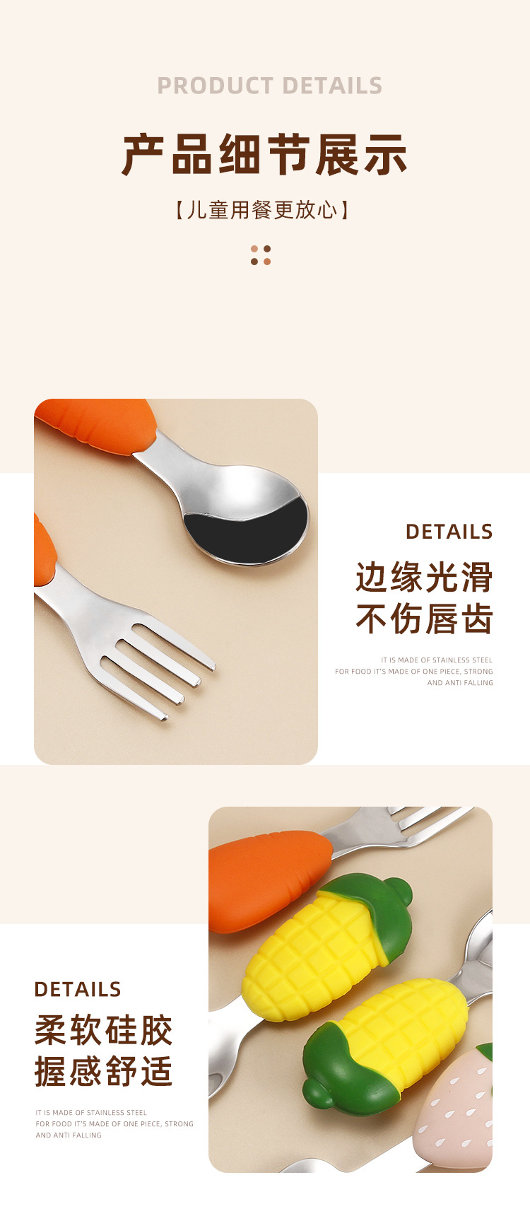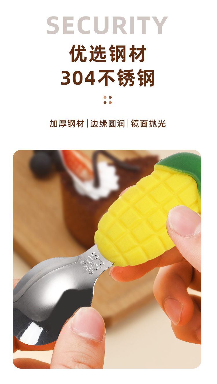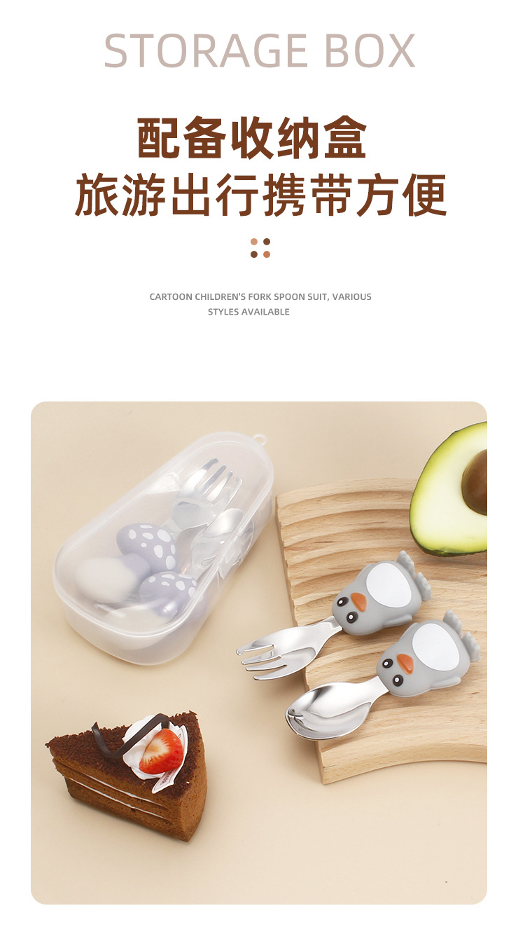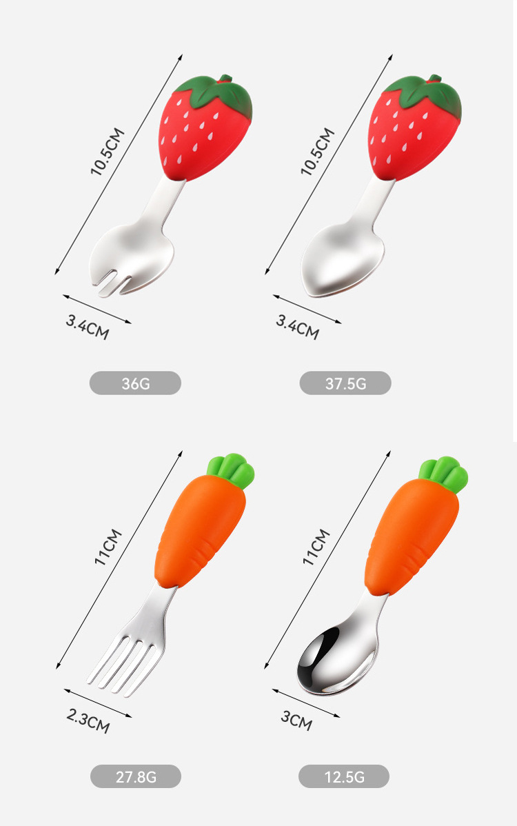 304不锈钢儿童餐具创意卡通勺叉宝宝辅食勺可爱硅胶餐具母婴用品