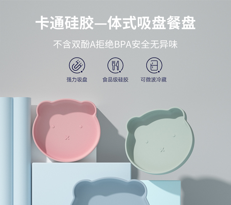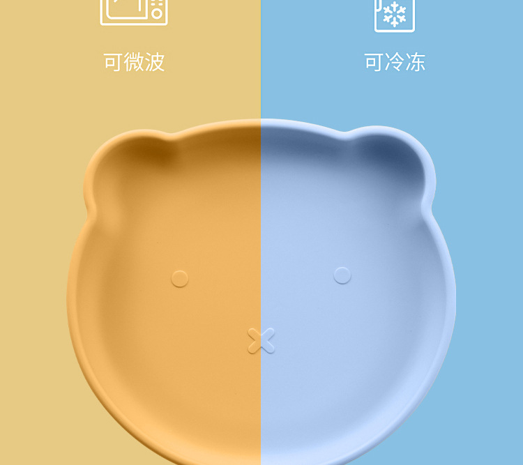 儿童硅胶餐盘小熊餐盘卡通盘子创意零食盘带吸盘防摔一体成型餐盘
