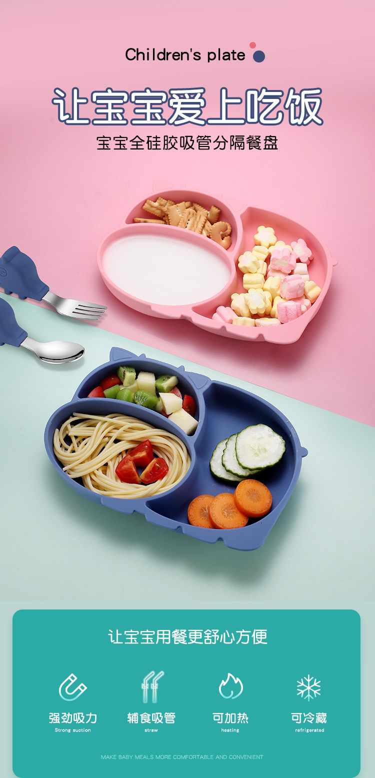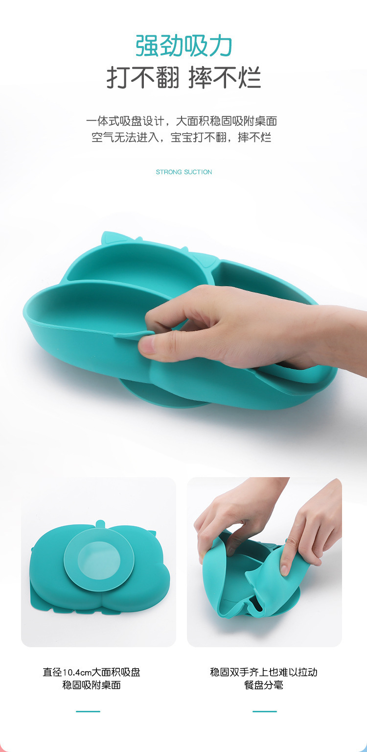 母婴用品宝宝卡通河马辅食分格餐盘 食品级喂养餐具儿童硅胶餐盘