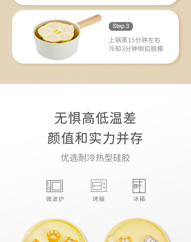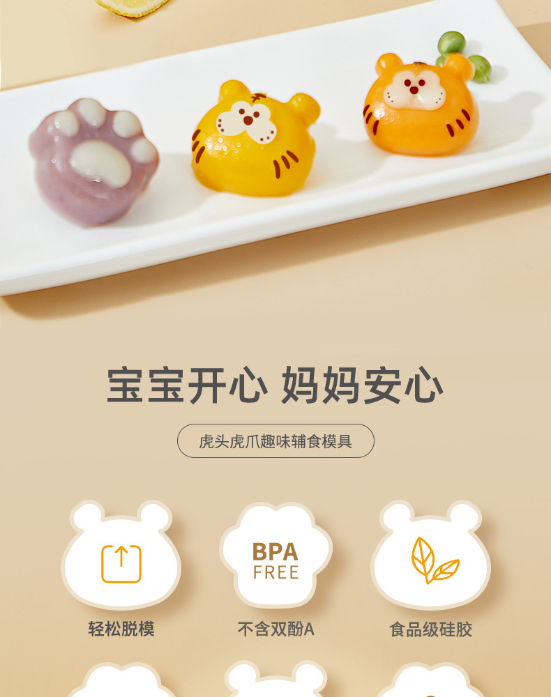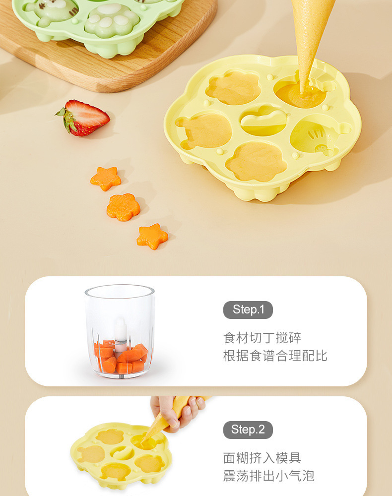 跨境宝宝辅食蒸糕模具婴儿硅胶可蒸煮工具猫爪蛋糕磨具造型糕点